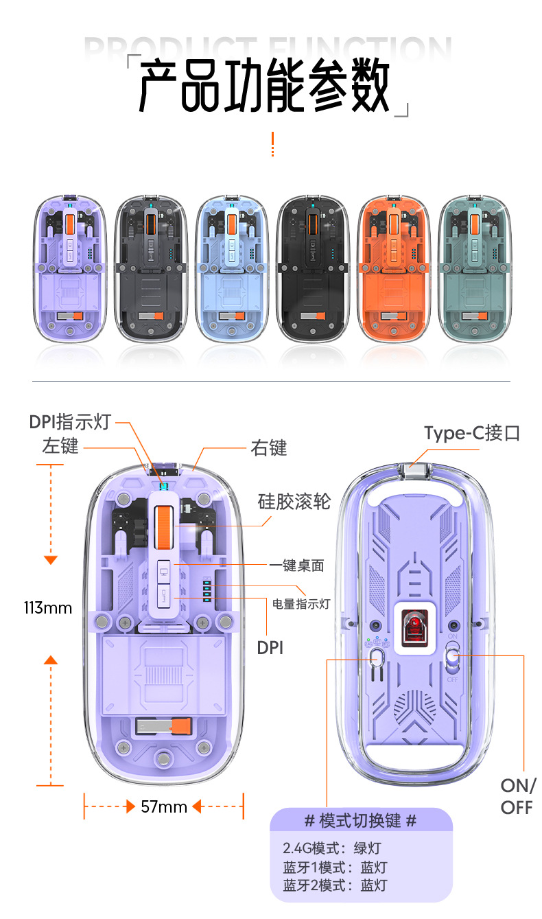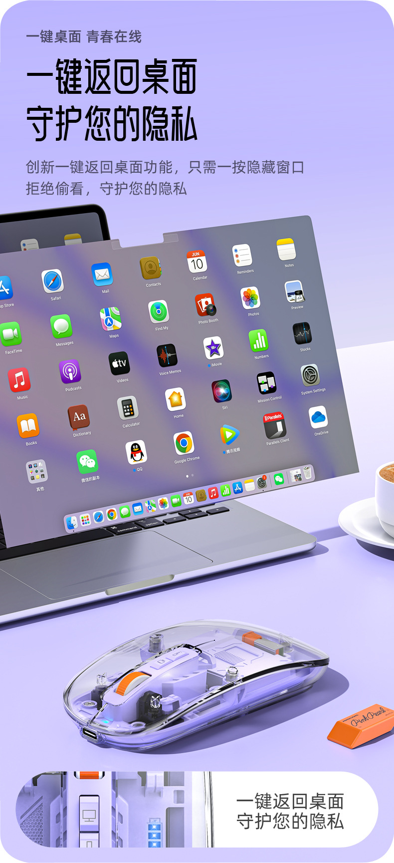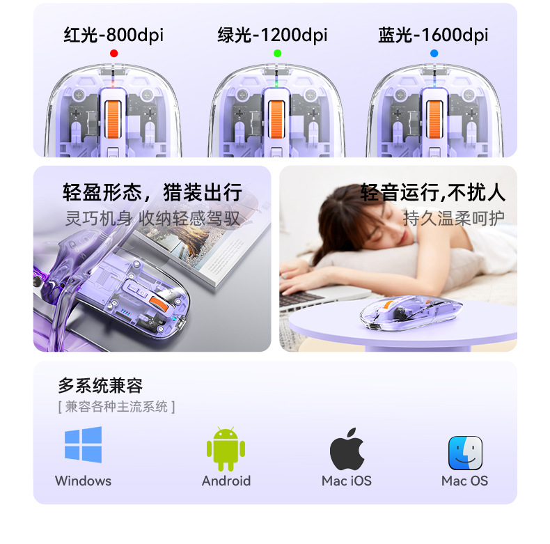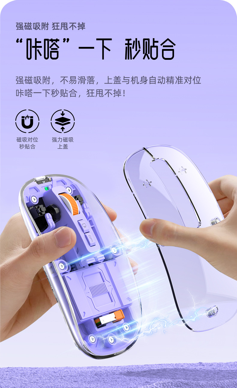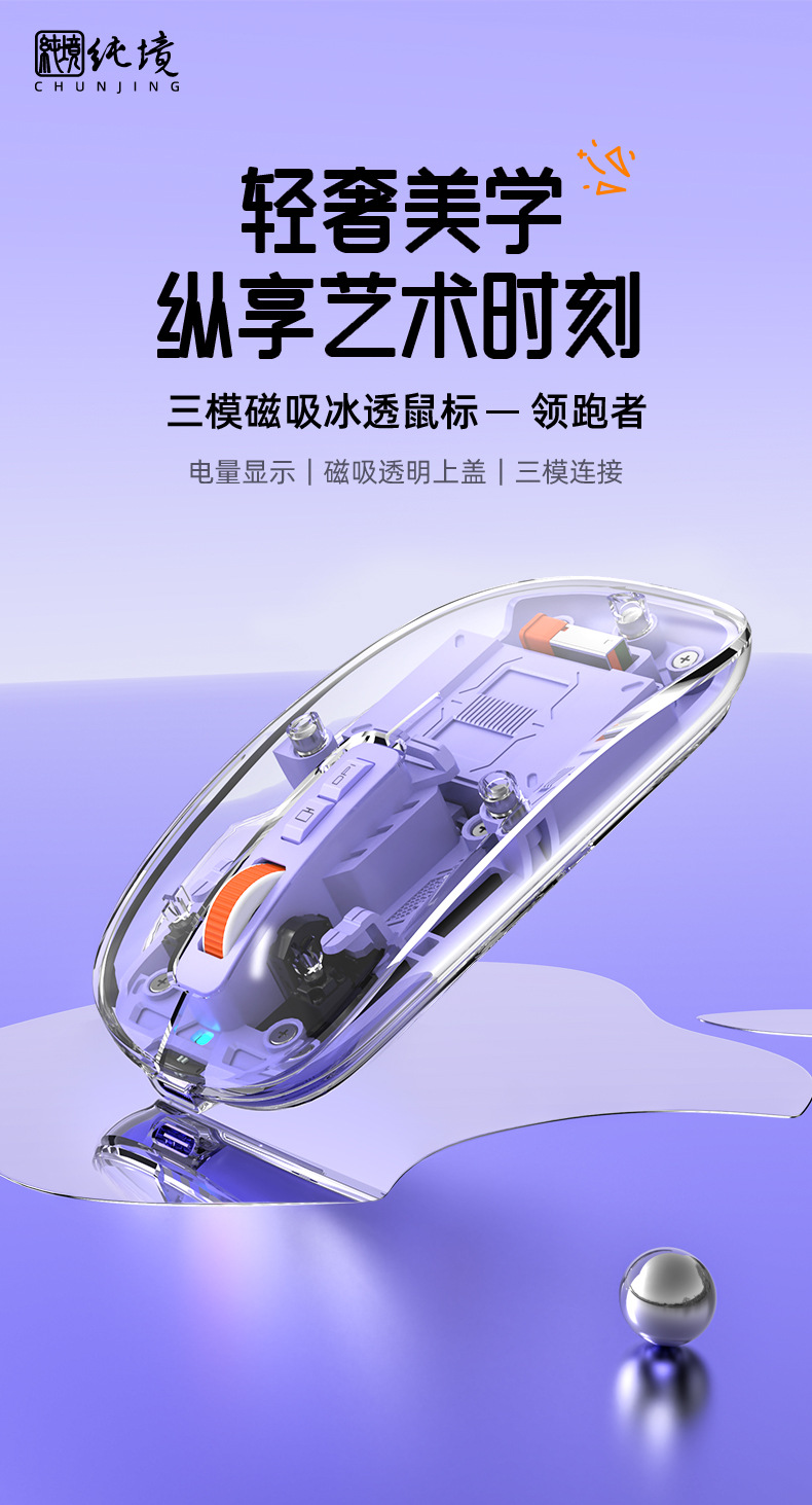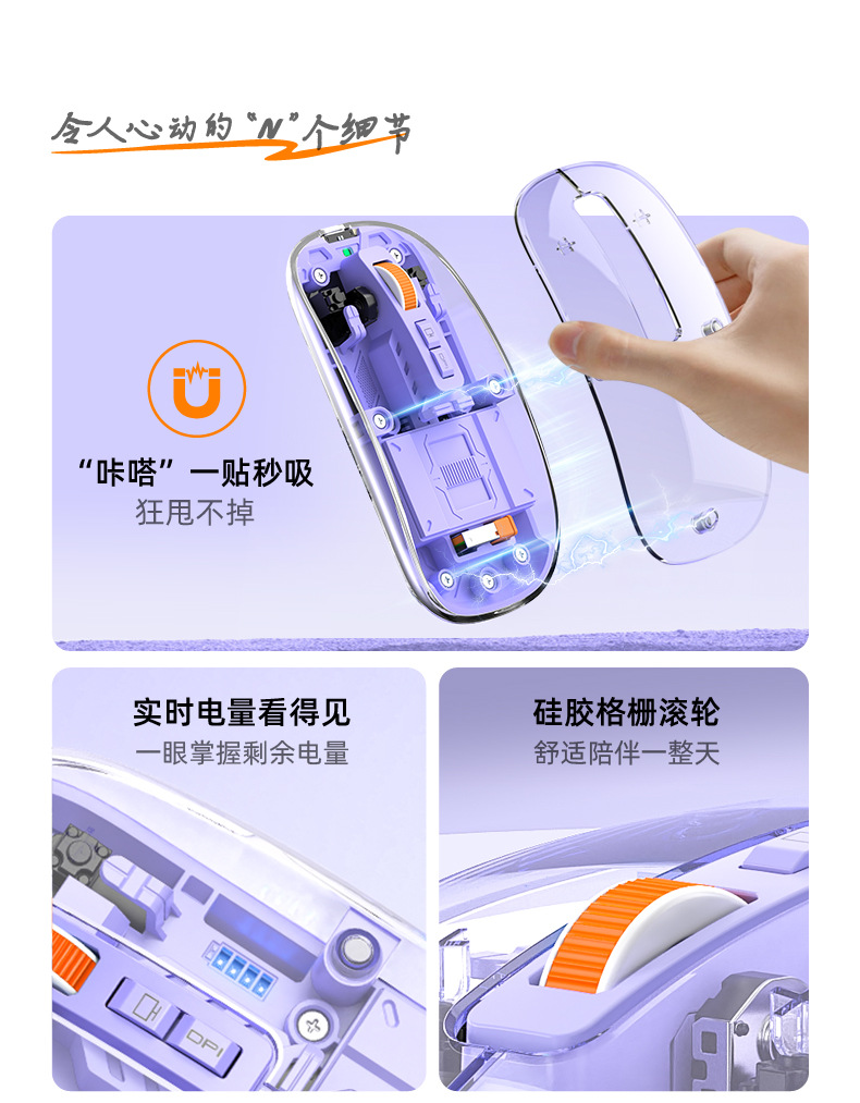 透明無線磁吸三模滑鼠充電款透明滑鼠筆電桌上型電腦通用藍牙滑鼠