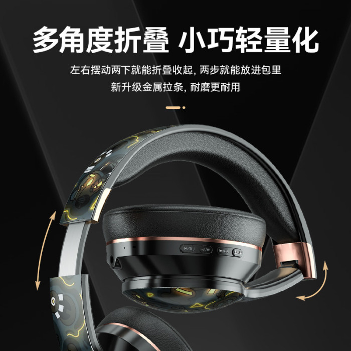 爆款無線藍牙耳機頭戴式國潮風網紅款潮流塗鴉重低音遊戯