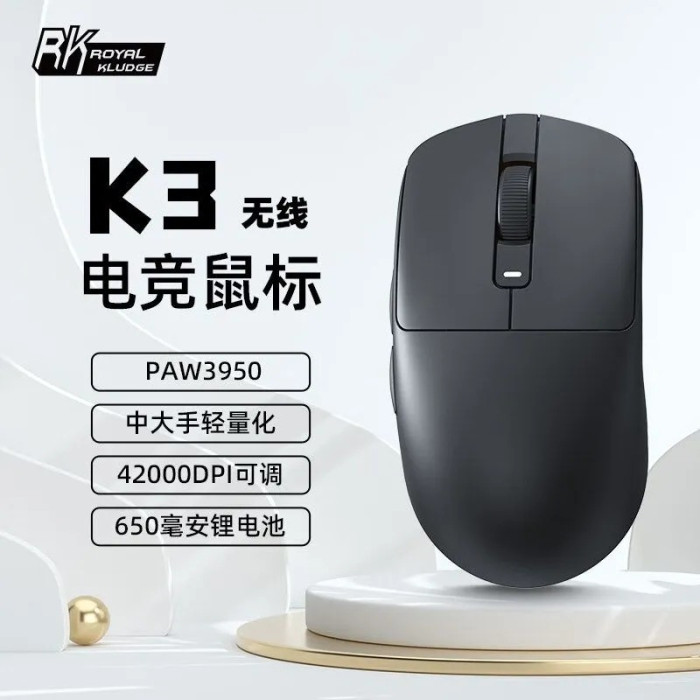 RK K3電競滑鼠無線藍牙三模有線輕量化PAW3950旗艦傳感器雙8K迴報
