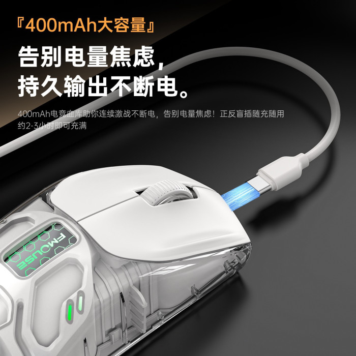 虎貓M500三模無線滑鼠藍牙透明遊戯電競筆電辦公電腦人體工學