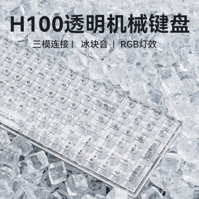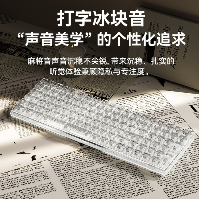 夢族H100無線透明機械鍵盤冰塊麻將音辦公桌上型電腦辦公遊戯通用