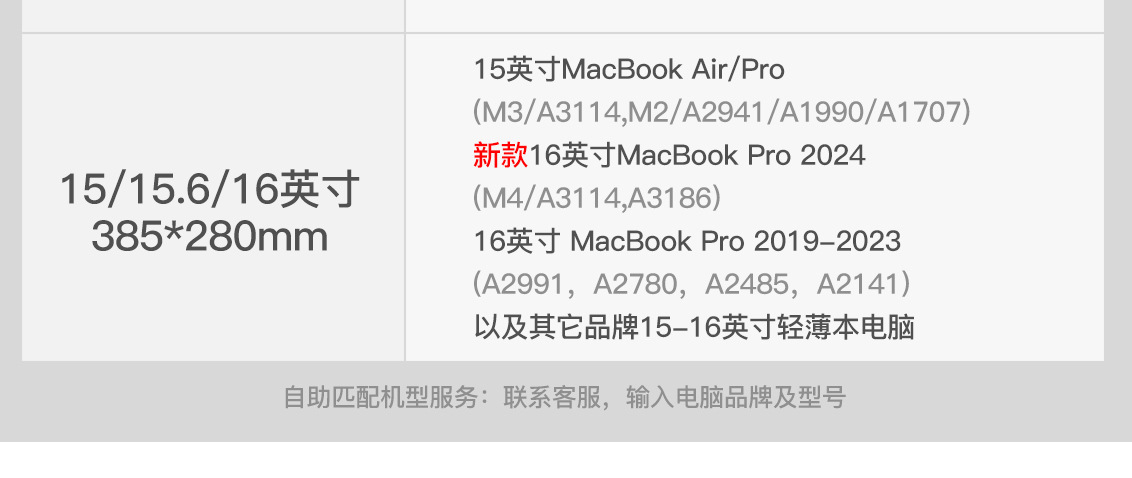 尺寸 15-15.4-15.6-16英寸