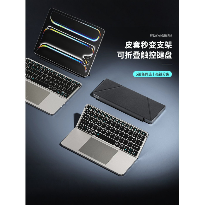 KOCULUS藍牙無線觸控鍵盤雙折曡收納適用蘋果ipad通用平板電腦