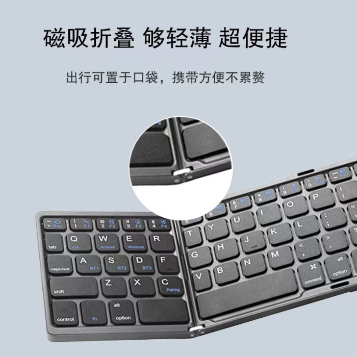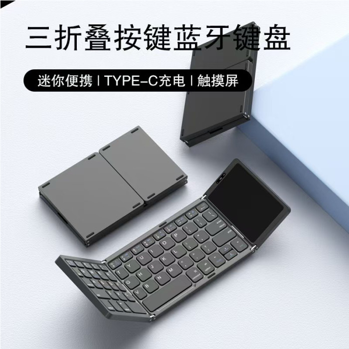 三折曡藍牙鍵盤可攜式超薄迷你鍵盤手機平板電腦全屏觸控折曡鍵盤