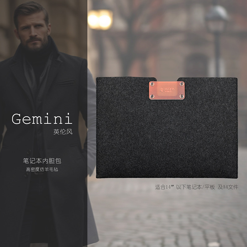 【多功能】UTOPAtouch Gemini英倫風雙袋macbook內膽包文件包蘋果筆記型電腦包高密羊毛氈 適用13/14寸