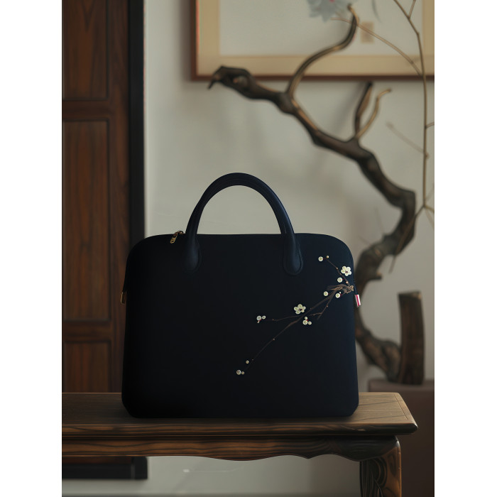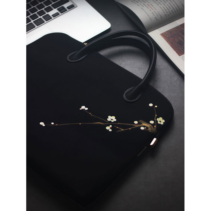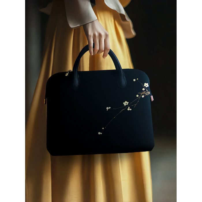 無香原創自製 古風手工純手繪布藝天絲麻手提包國風中式電腦包黑色公文包手拎包14寸15寸16寸
