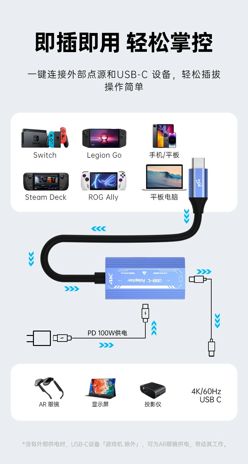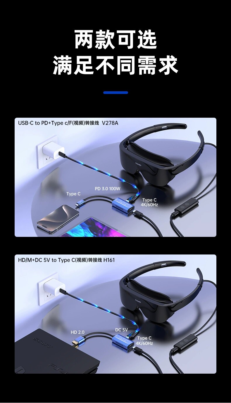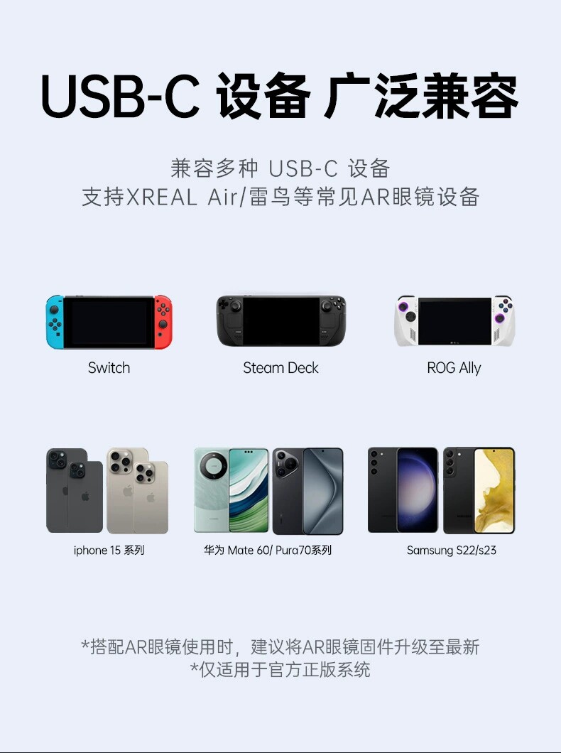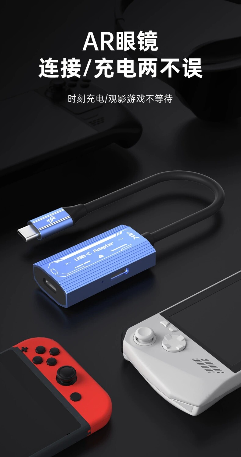 AR智能眼鏡充電二合一轉接器typec手機電腦連接rokid/xreal擴展隖