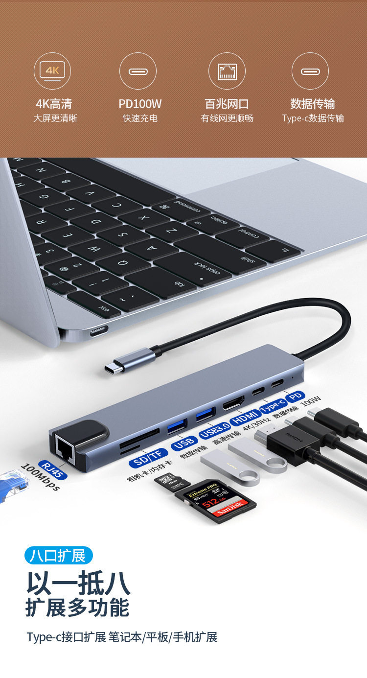 typec拓展隖筆電擴展隖HDMI多接口網線轉換器USB多功能轉接千兆