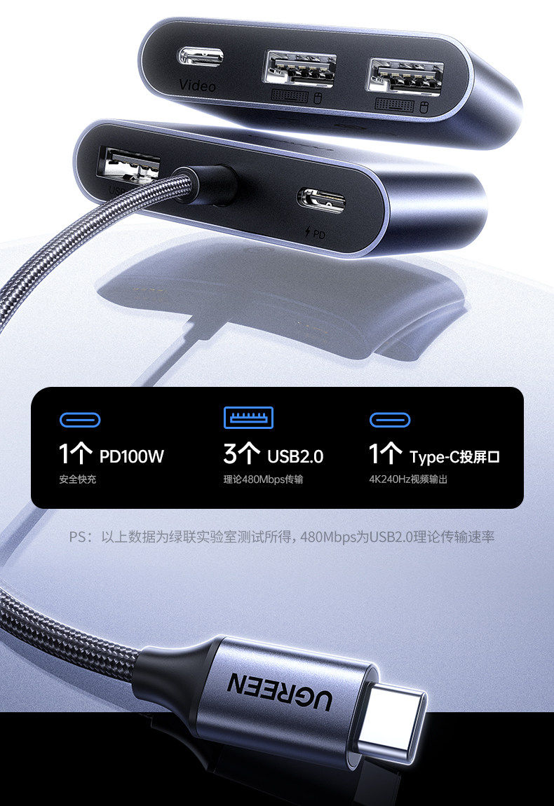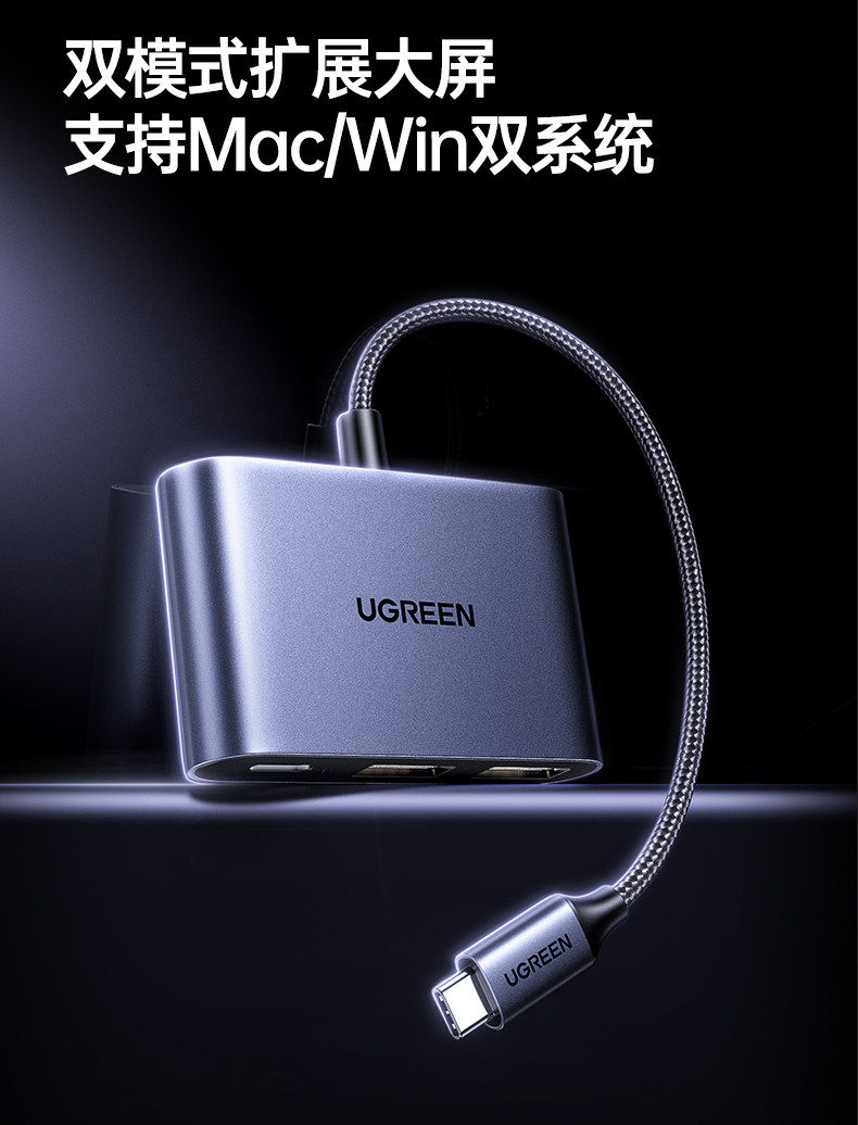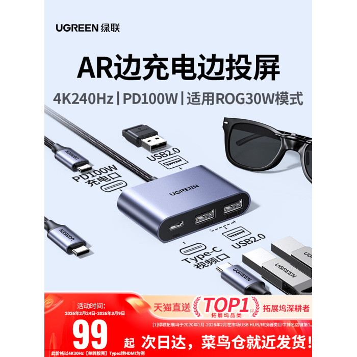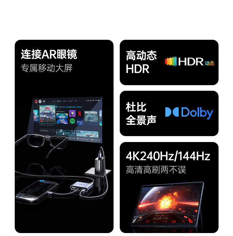 綠聯AR眼鏡轉換器Typec拓展隖一分二4K240Hz投影顯示PD充電擴展US