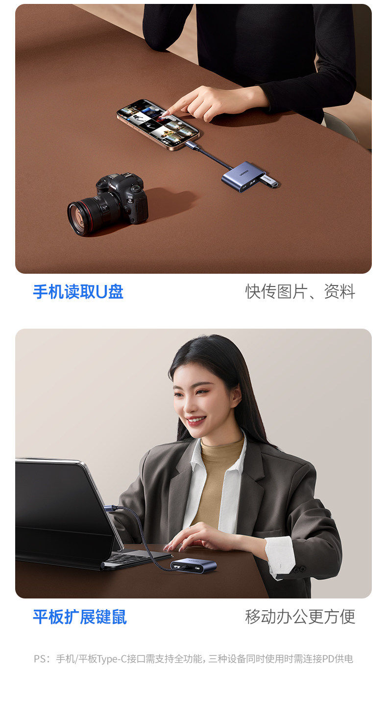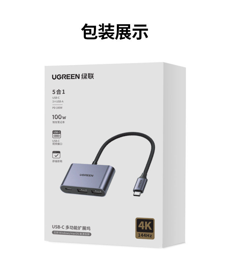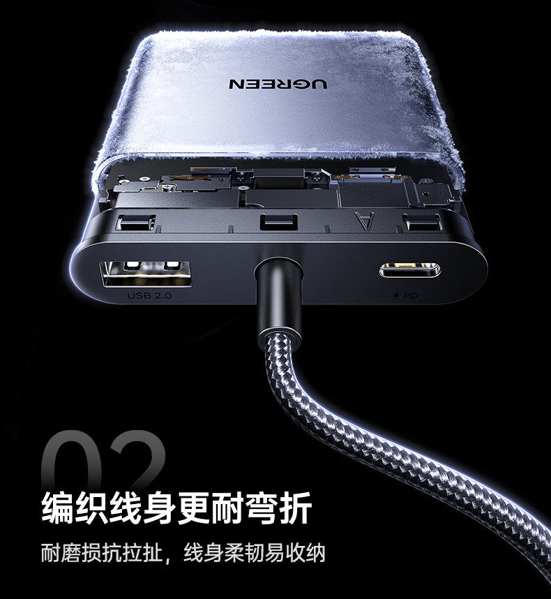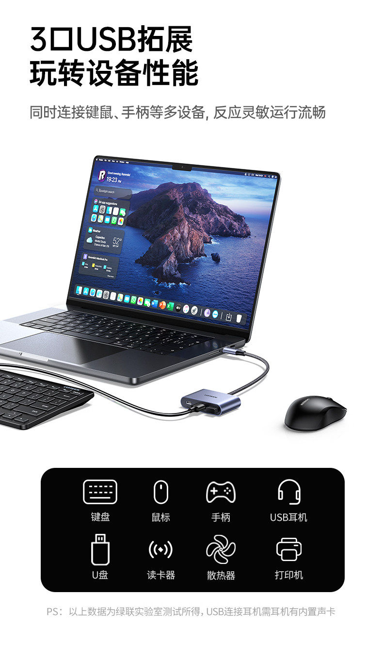 綠聯AR眼鏡轉換器Typec拓展隖一分二4K240Hz投影顯示PD充電擴展US