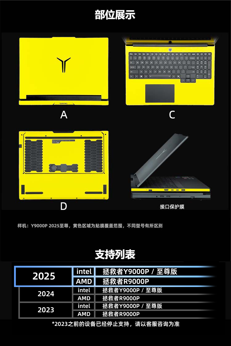 適用聯想拯救者2025/24/23款YR9000P普通至尊版款機身保護貼紙膜