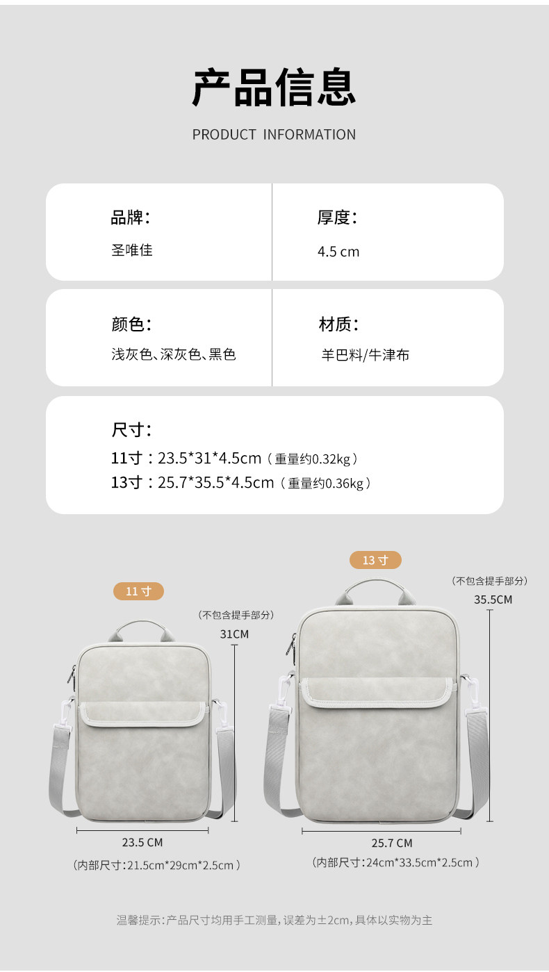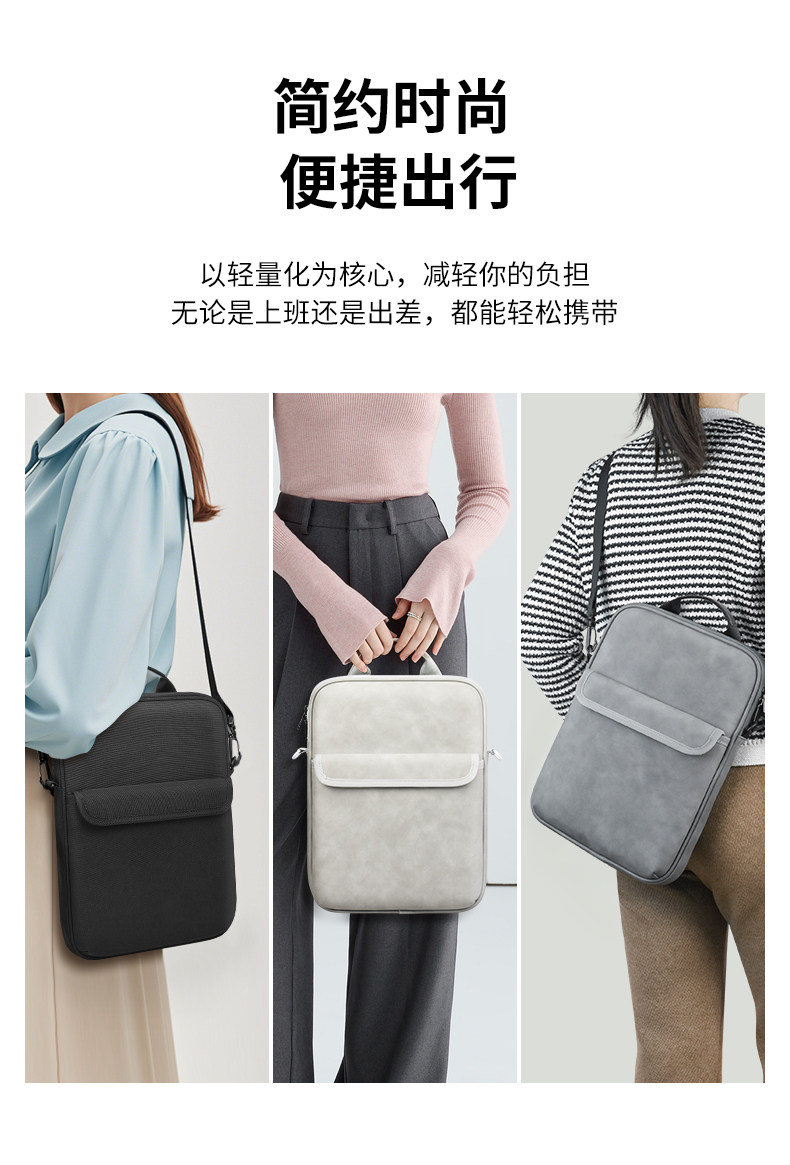 聖唯佳ipad薄款平板電腦包可收納11.5寸13寸14寸筆電男女外出攜帶通勤平板包高級感小衆手提斜背三用後後背包