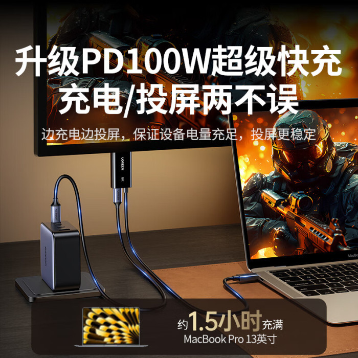 綠聯Type-C轉DP1.4線帶PD100W充電雷電4/5轉換器USB-C轉接8K60Hz