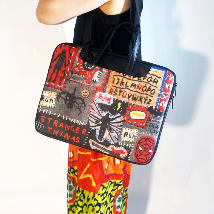 升級款手提斜背皮革電腦包男女適用蘋果Air13華爲matebook14聯想拯救者惠普戴爾17/16/15寸筆電內膽包怪奇