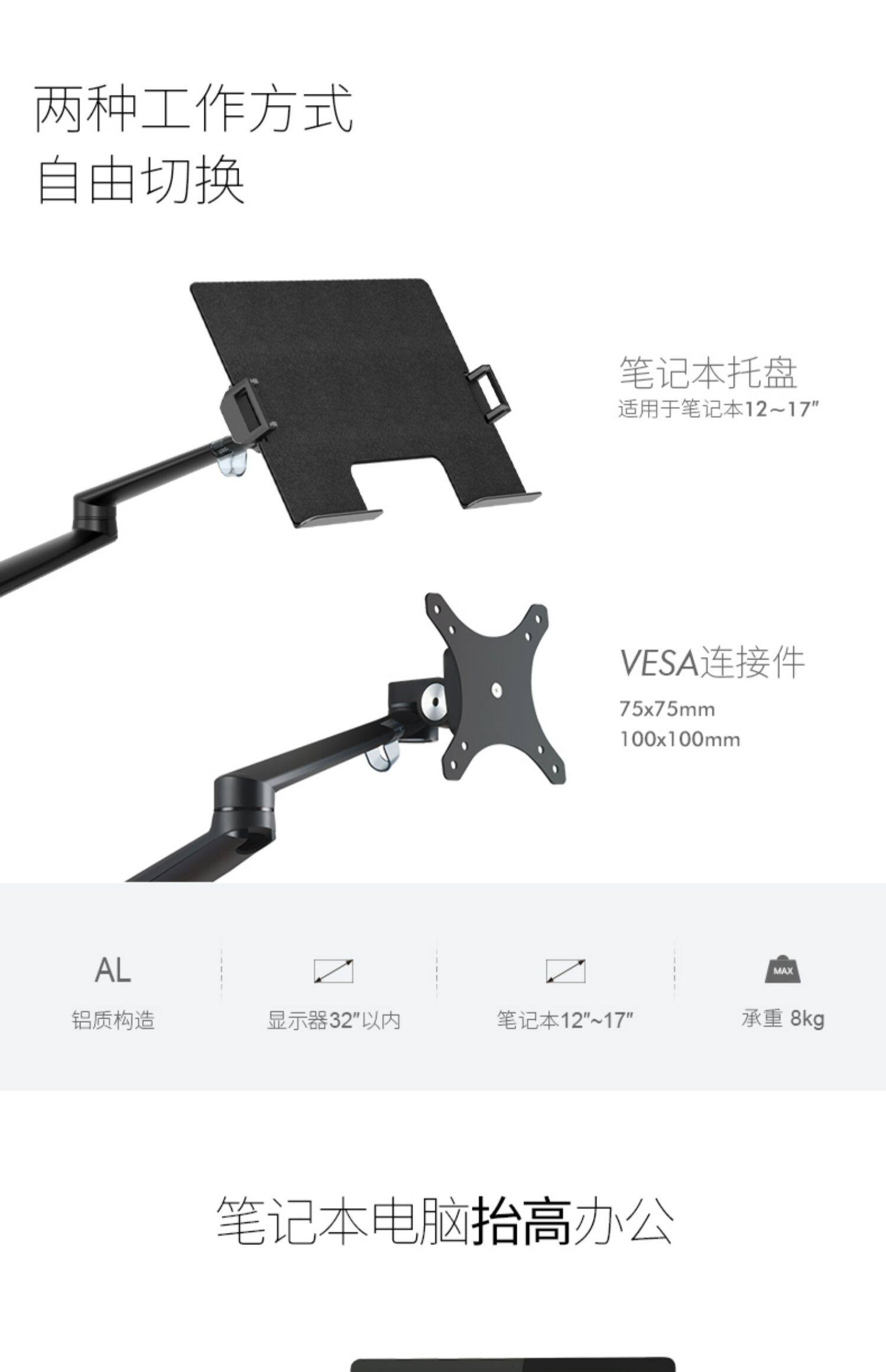 埃普OL-1S筆電支架顯示器屏桌面升降蘋果Macbook電腦架增高站立