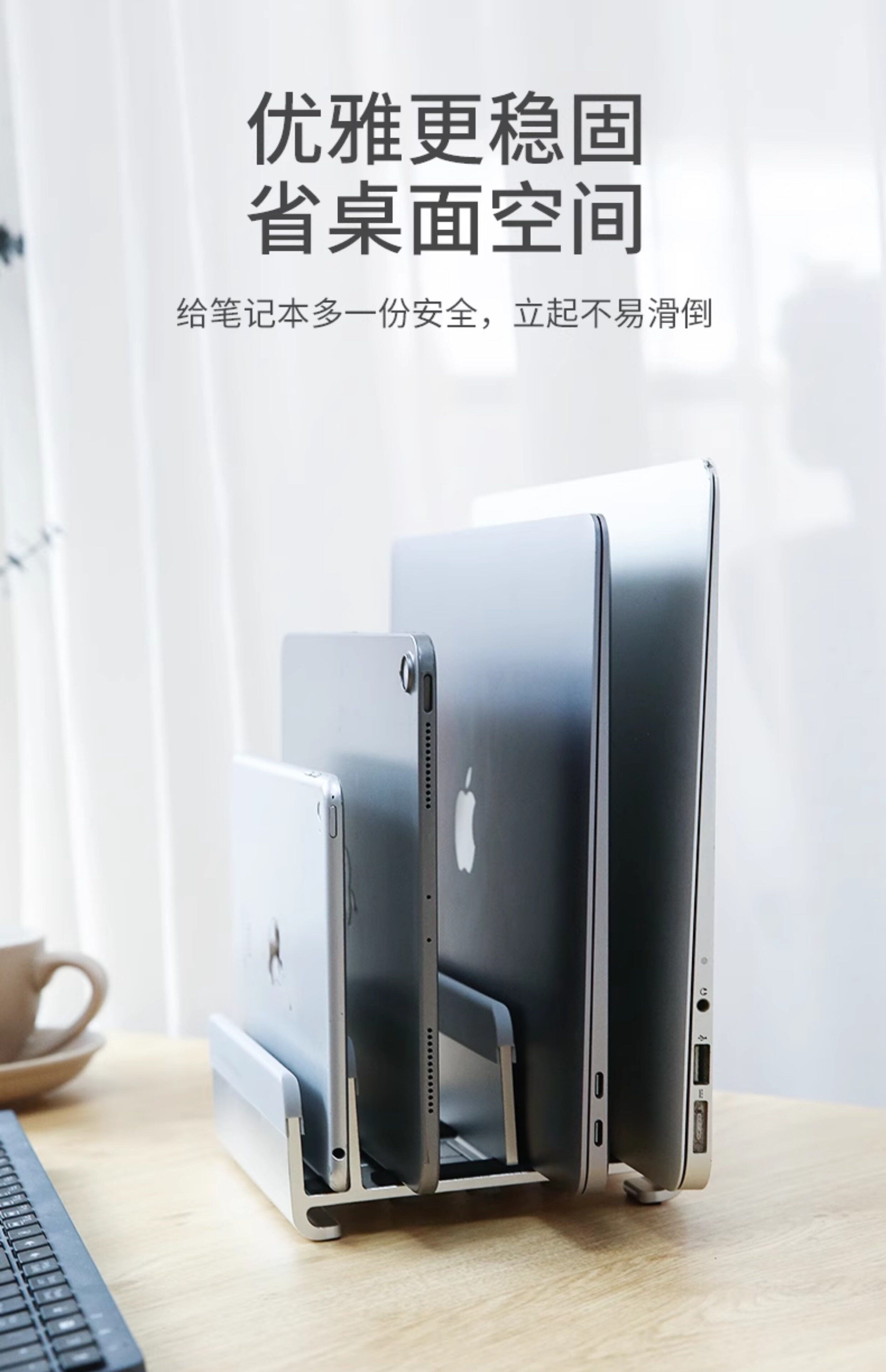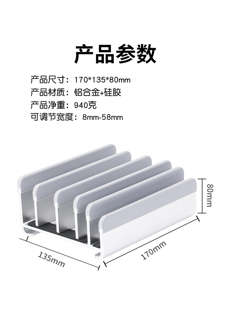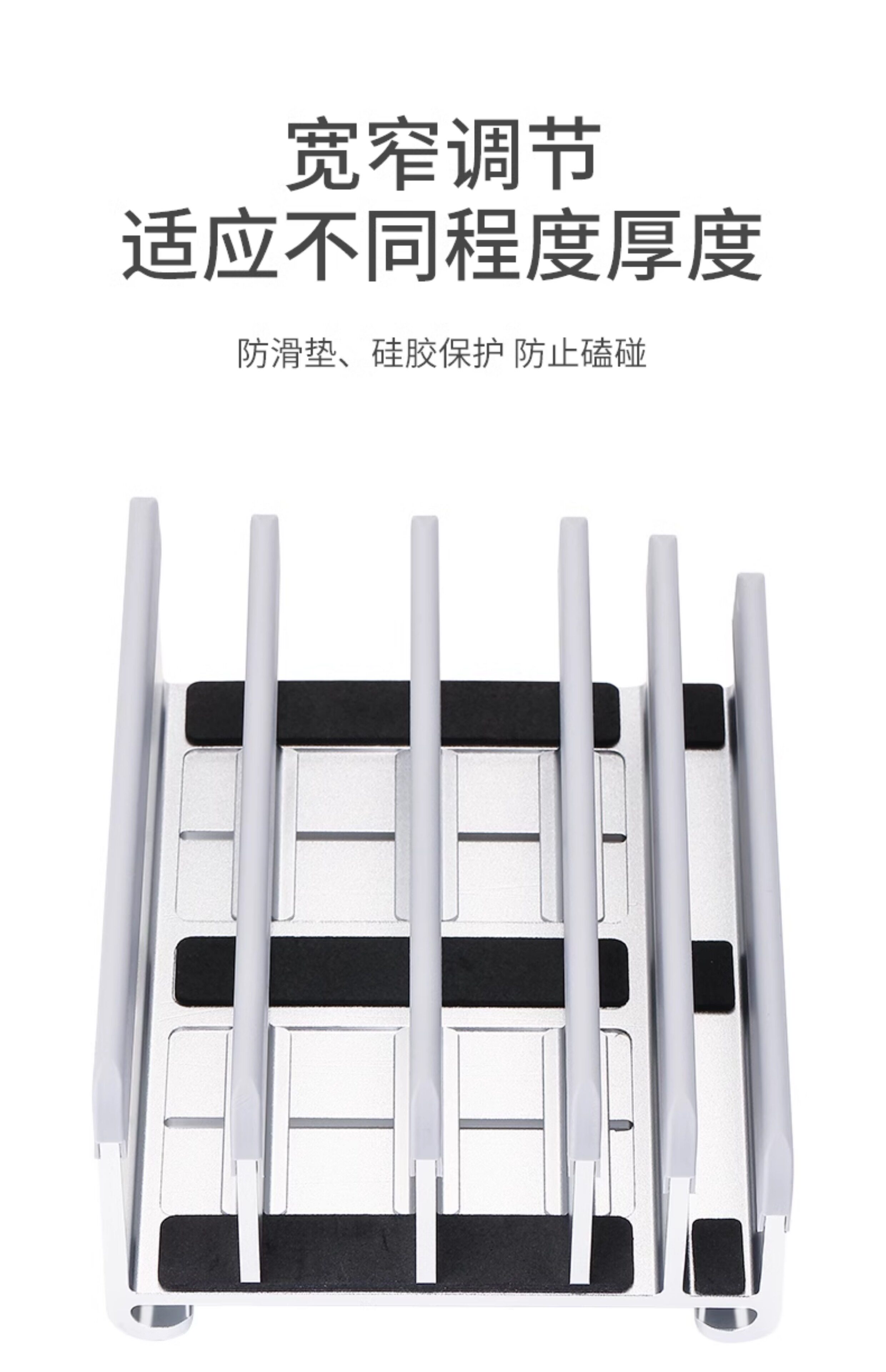 筆電立式支架桌面收納置物五槽可調節金屬電腦底座適用鍵盤平板