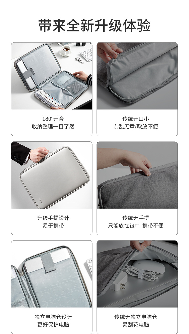 包納全開合皮質手提內膽包適用於蘋果聯想戴爾華爲筆記型電腦包