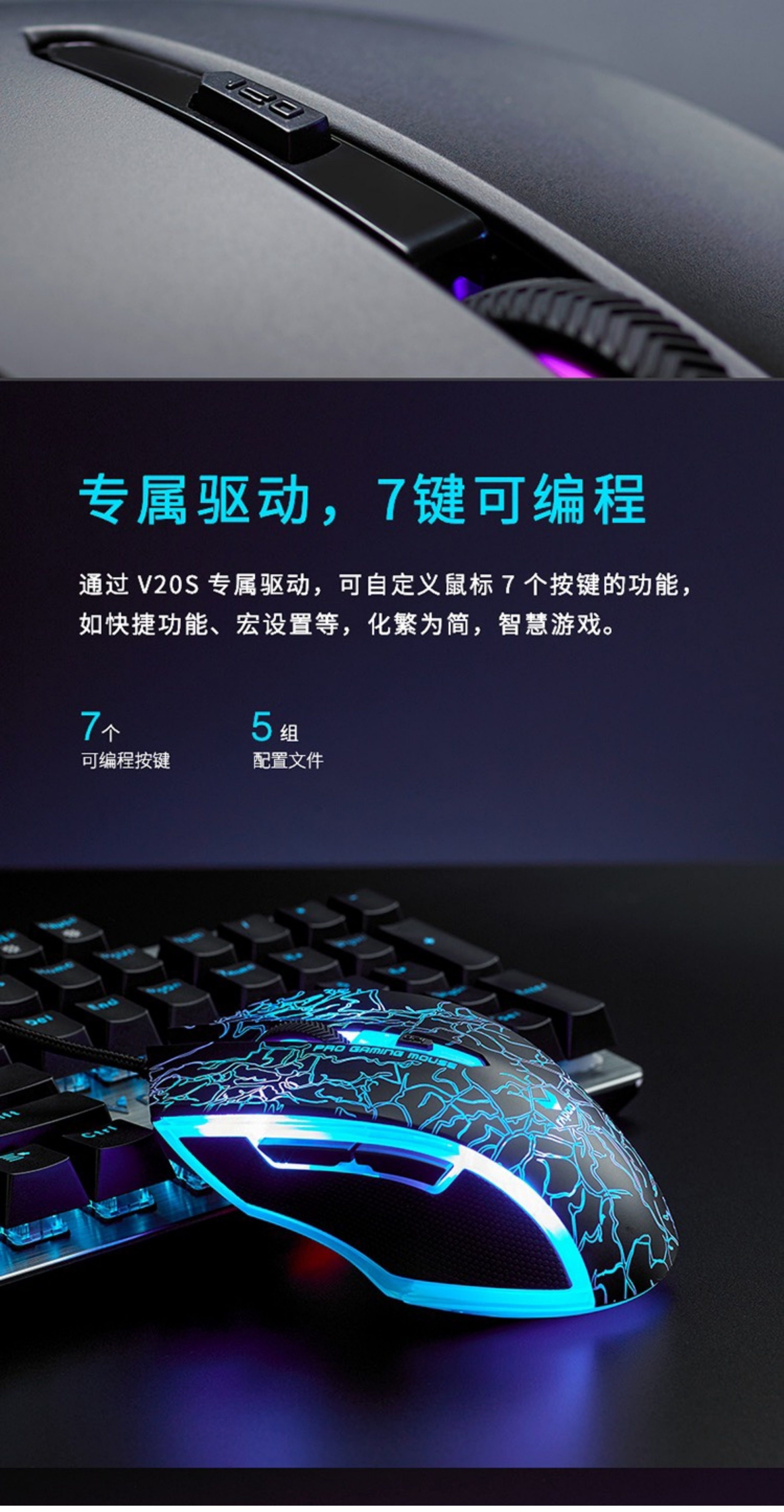 Rapoo雷柏V20S/V20PRO滑鼠有線辦公專業電競遊戯喫雞帶側鍵可編程