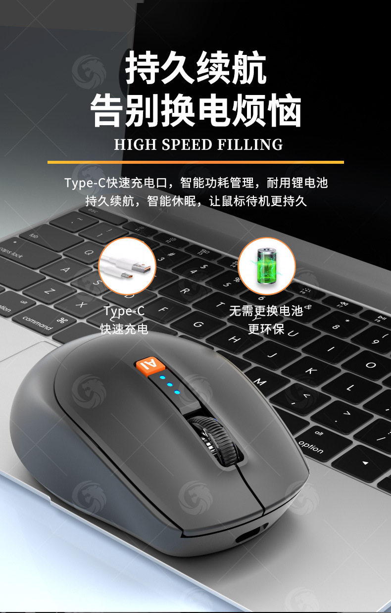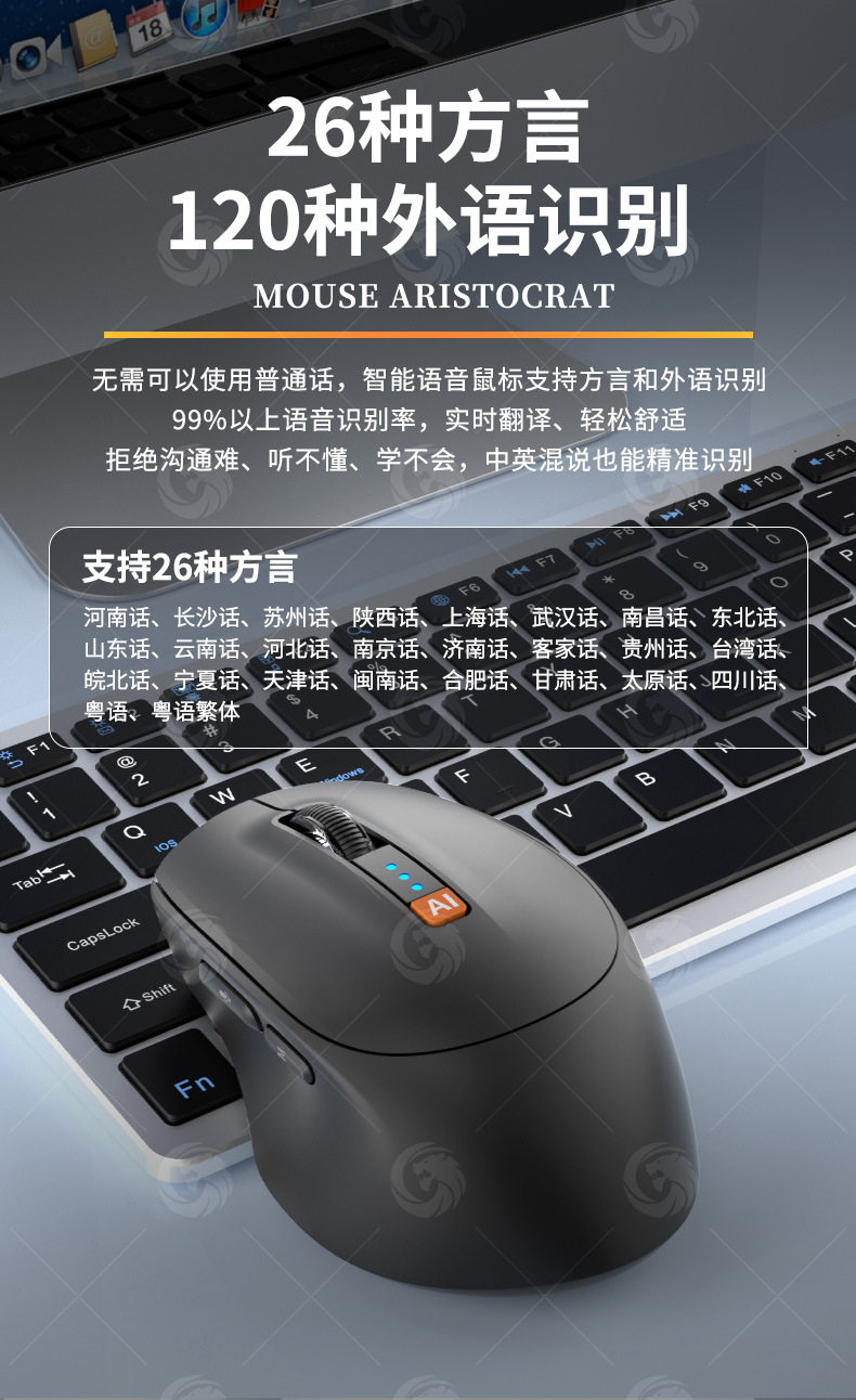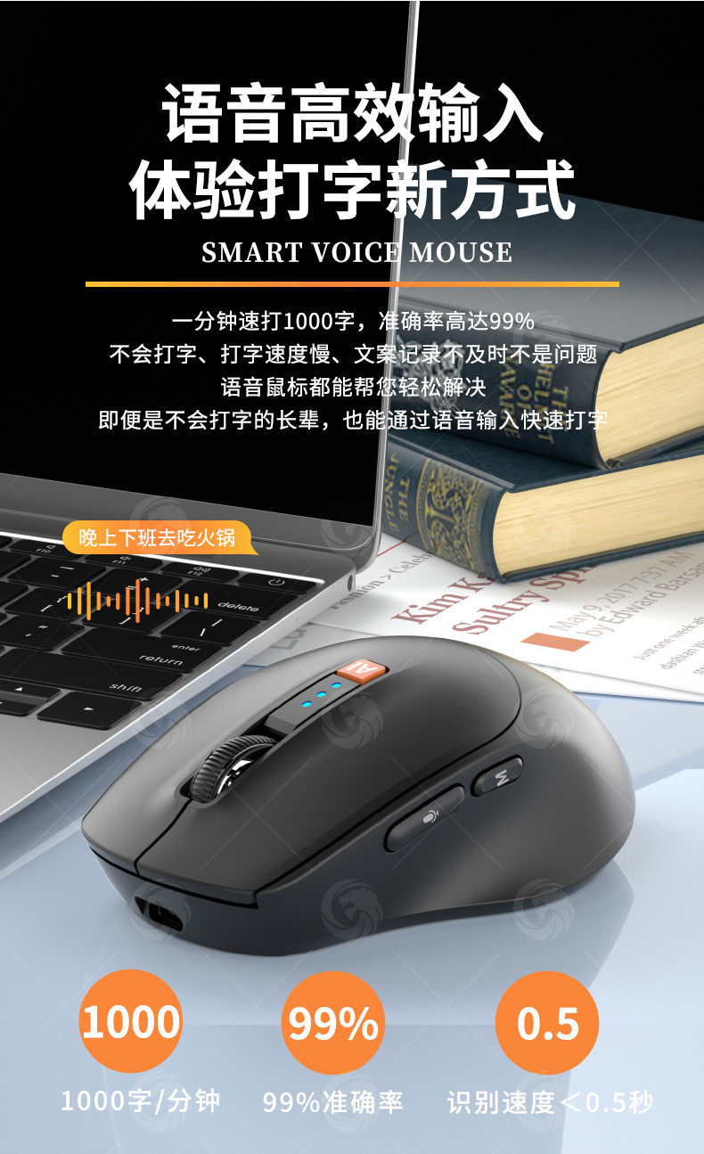 Ai智能語音滑鼠人工智能寫作繙譯打字可充電藍牙三模無線靜音滑鼠