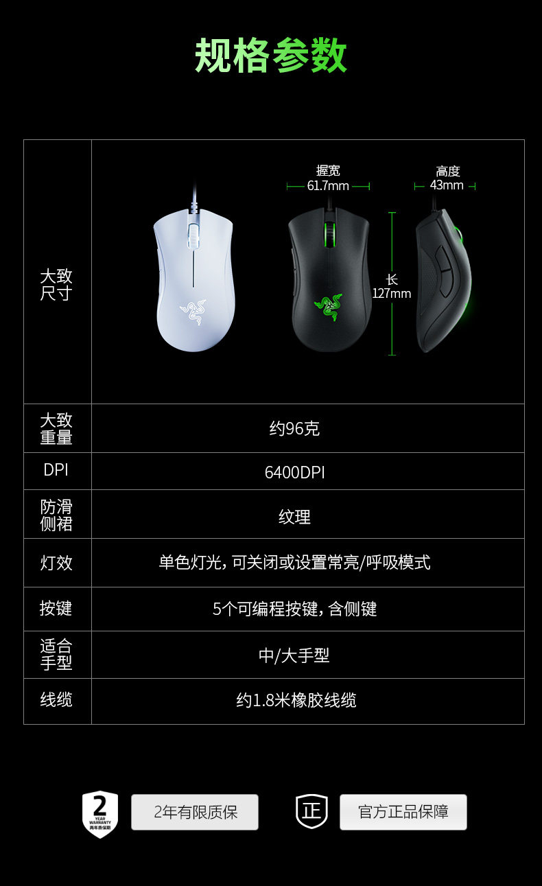 Razer雷蛇鍊獄蝰蛇標準版桌上型電腦辦公有線中大手電競遊戯滑鼠