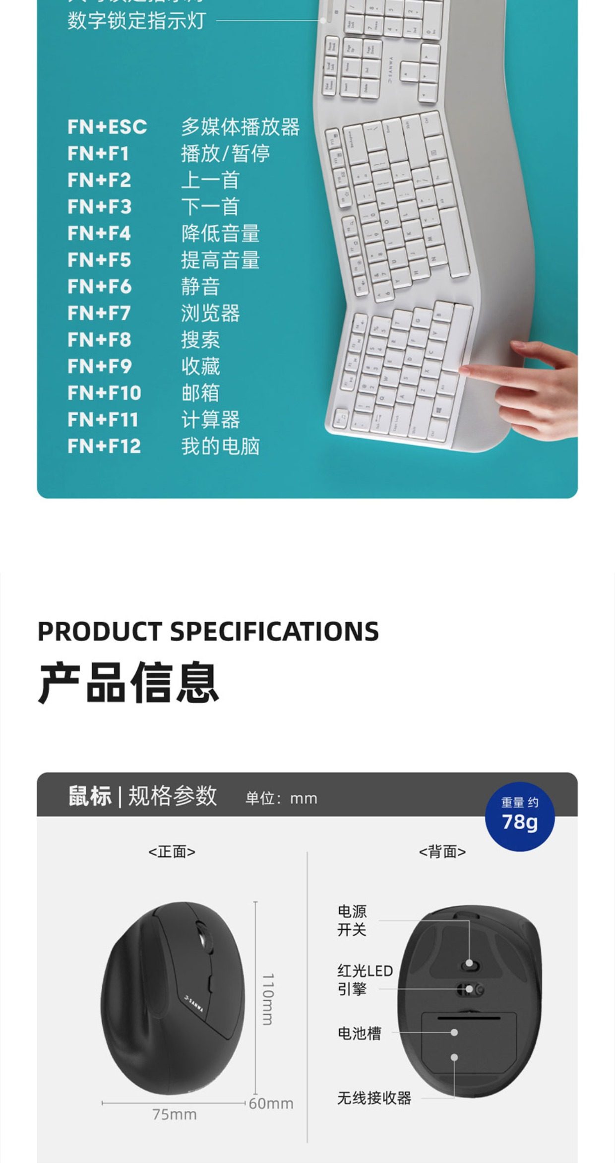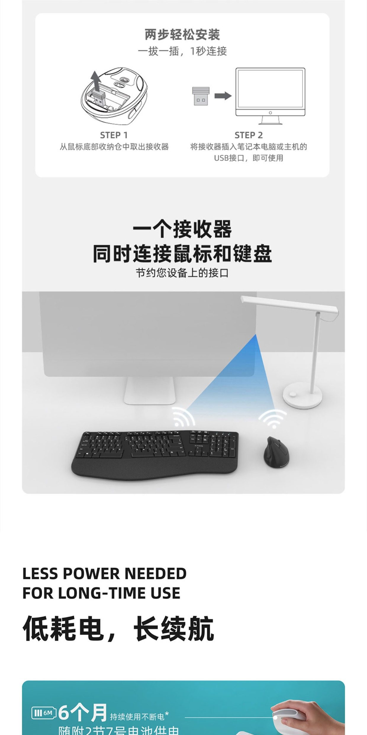 日本山業無線鍵盤滑鼠套裝靜音人體工學辦公桌上型筆電通用鍵鼠