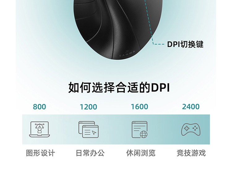 日本山業sanwa人體工學三模垂直滑鼠無線藍牙竪向顯示屏充電辦公