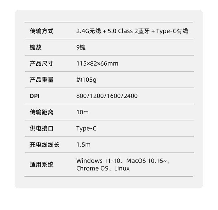 | 工作方式 | 無線藍牙雙模 |