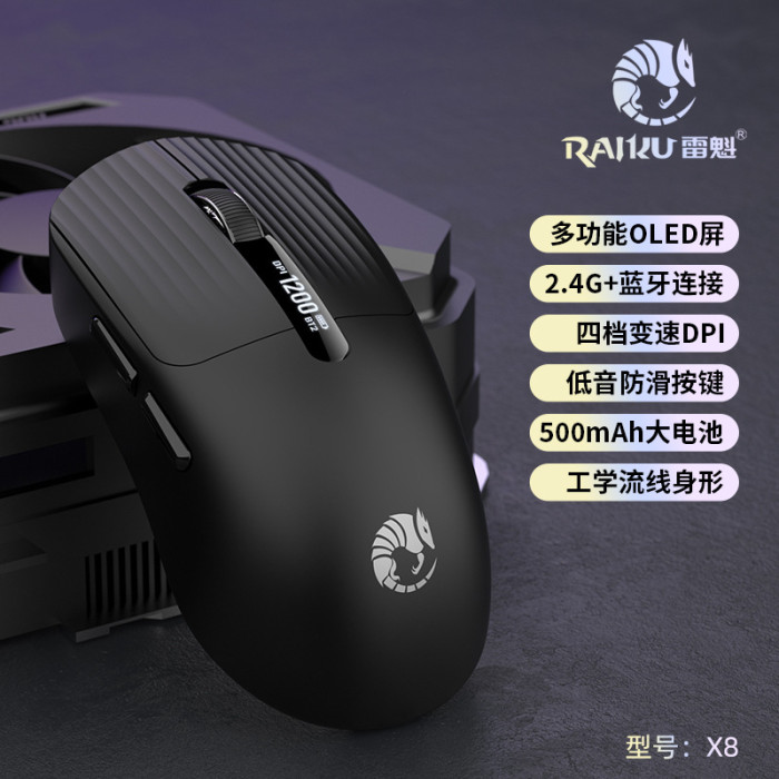 雷魁X8無線滑鼠藍牙雙模輕量化電競遊戯滑鼠充電帶螢幕顯示2.4G