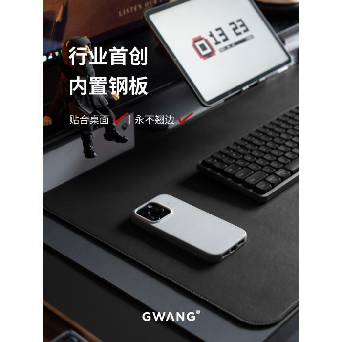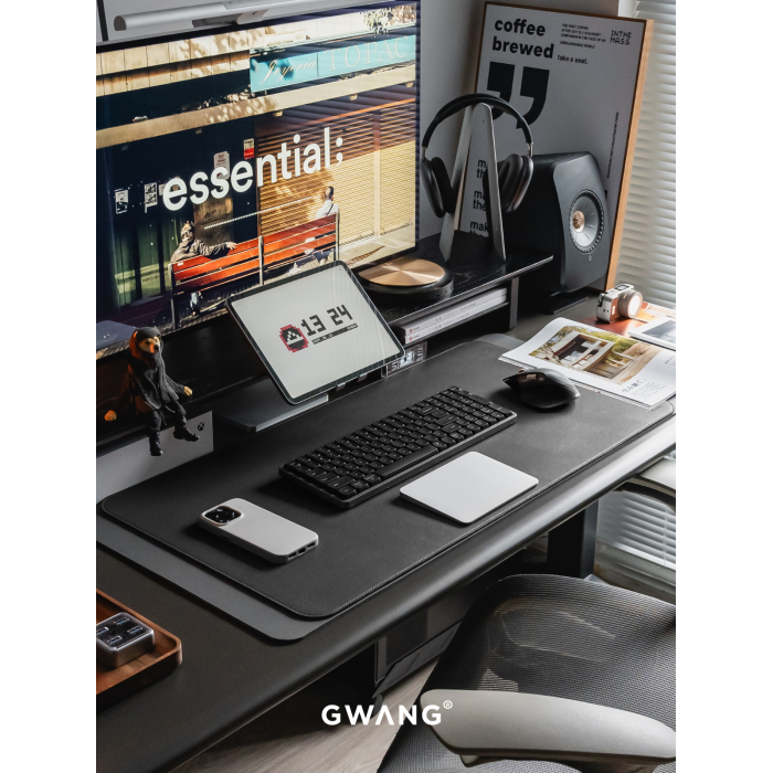 GWANG真皮質感黑棕色超大滑鼠鍵盤辦公寫字電腦桌墊內置鋼板磁吸