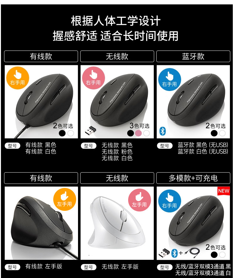 日本SANWA滑鼠mac無線藍牙人體工學竪握式預防滑鼠手有線女士小巧