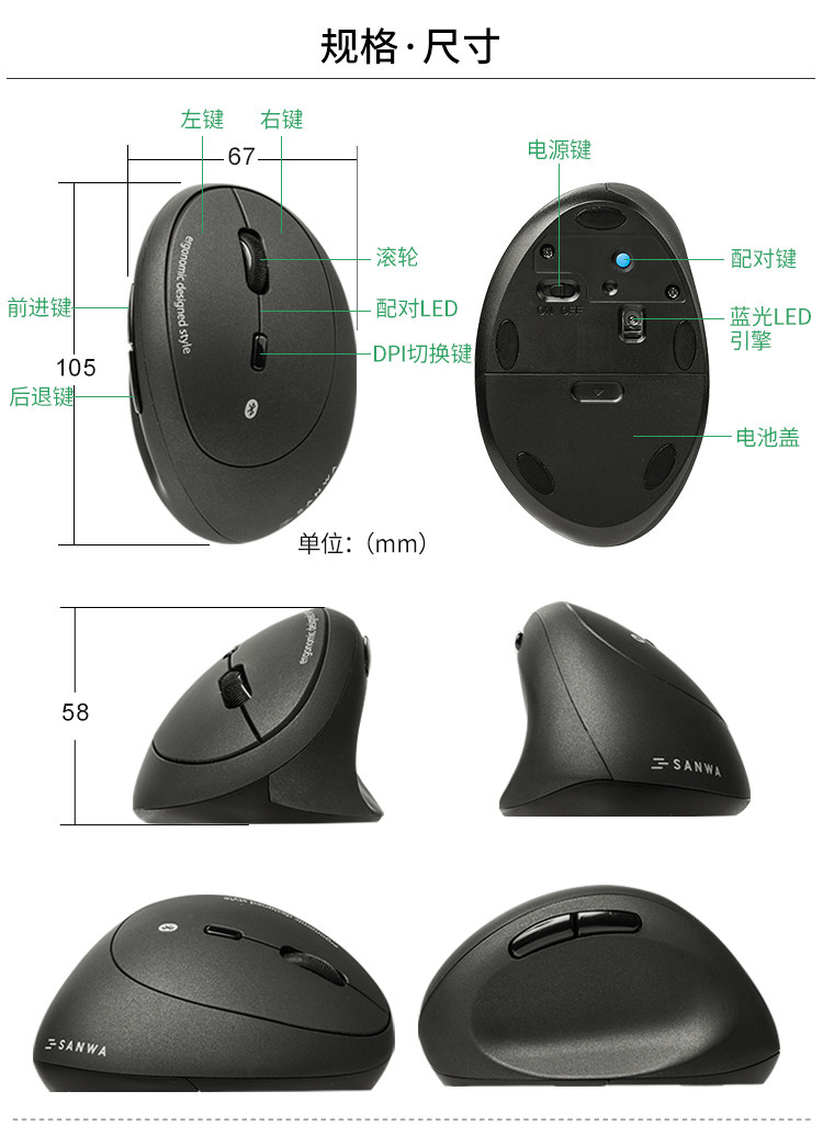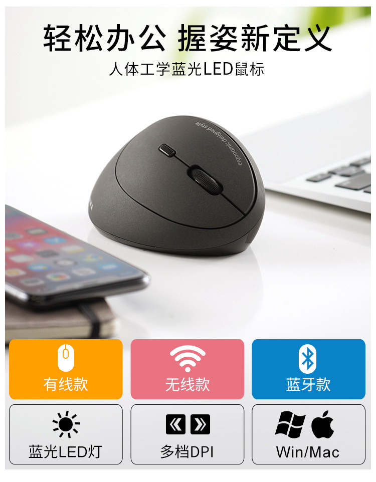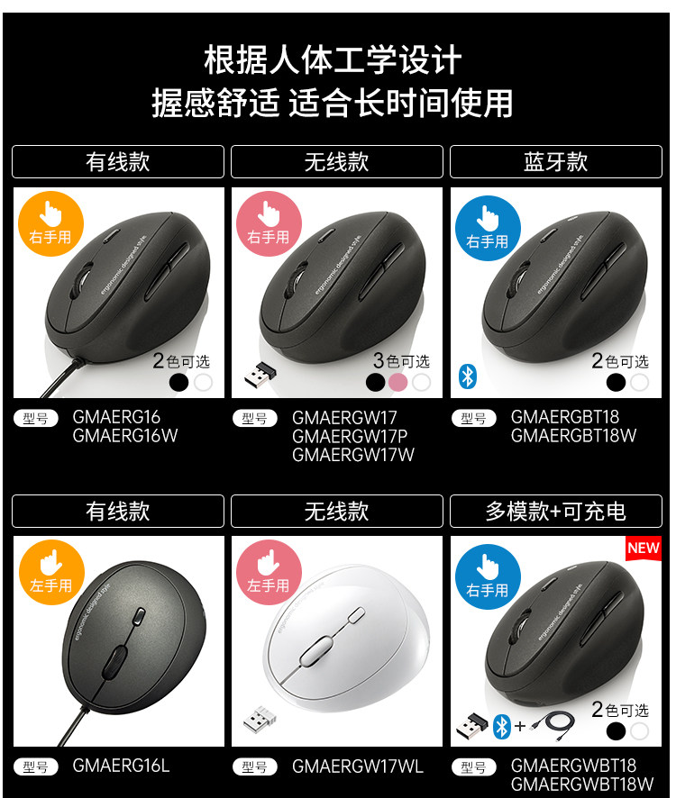 日本山業藍牙小型滑鼠竪握人體工學辦公男女無線家用有左手專用款