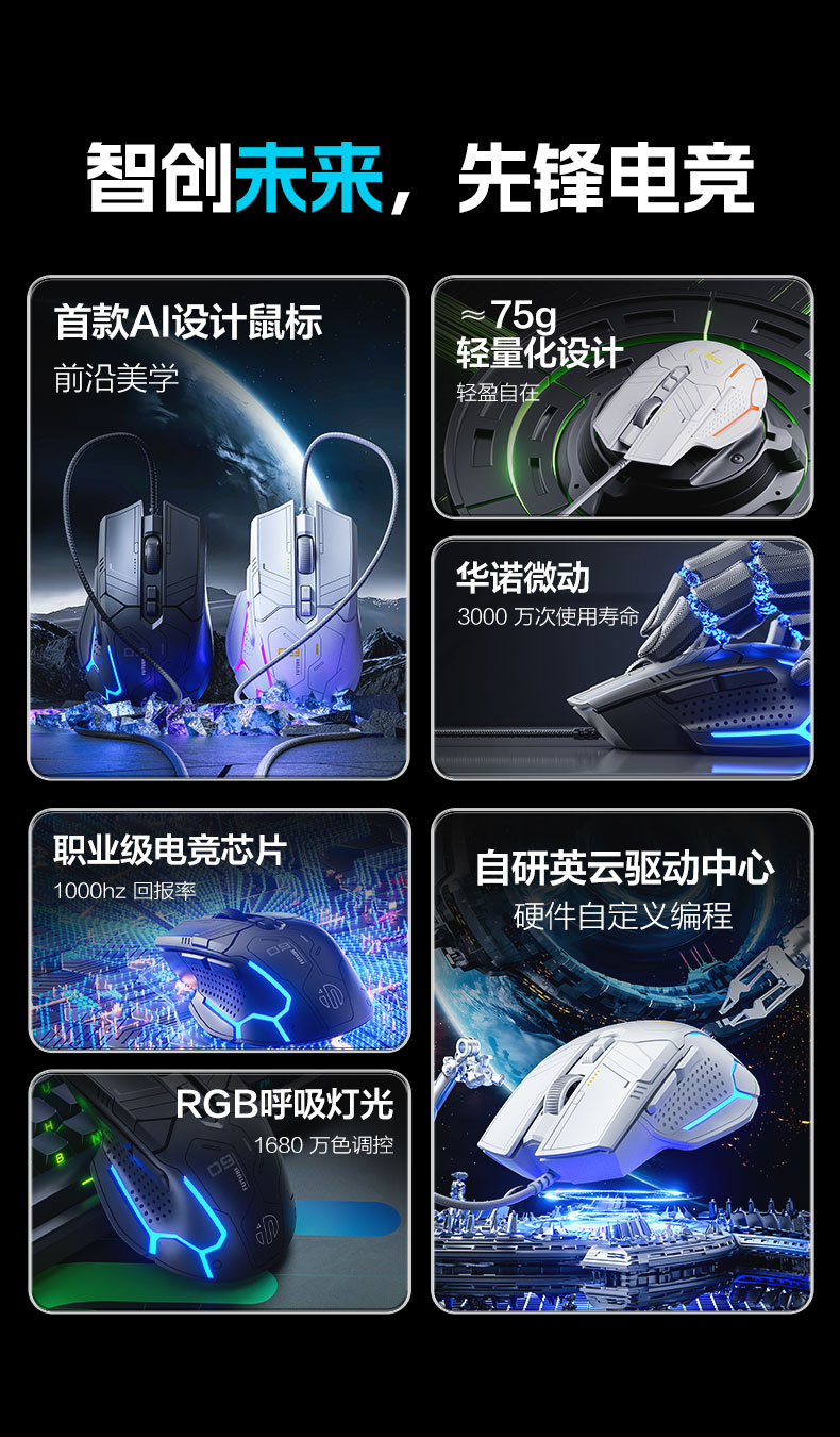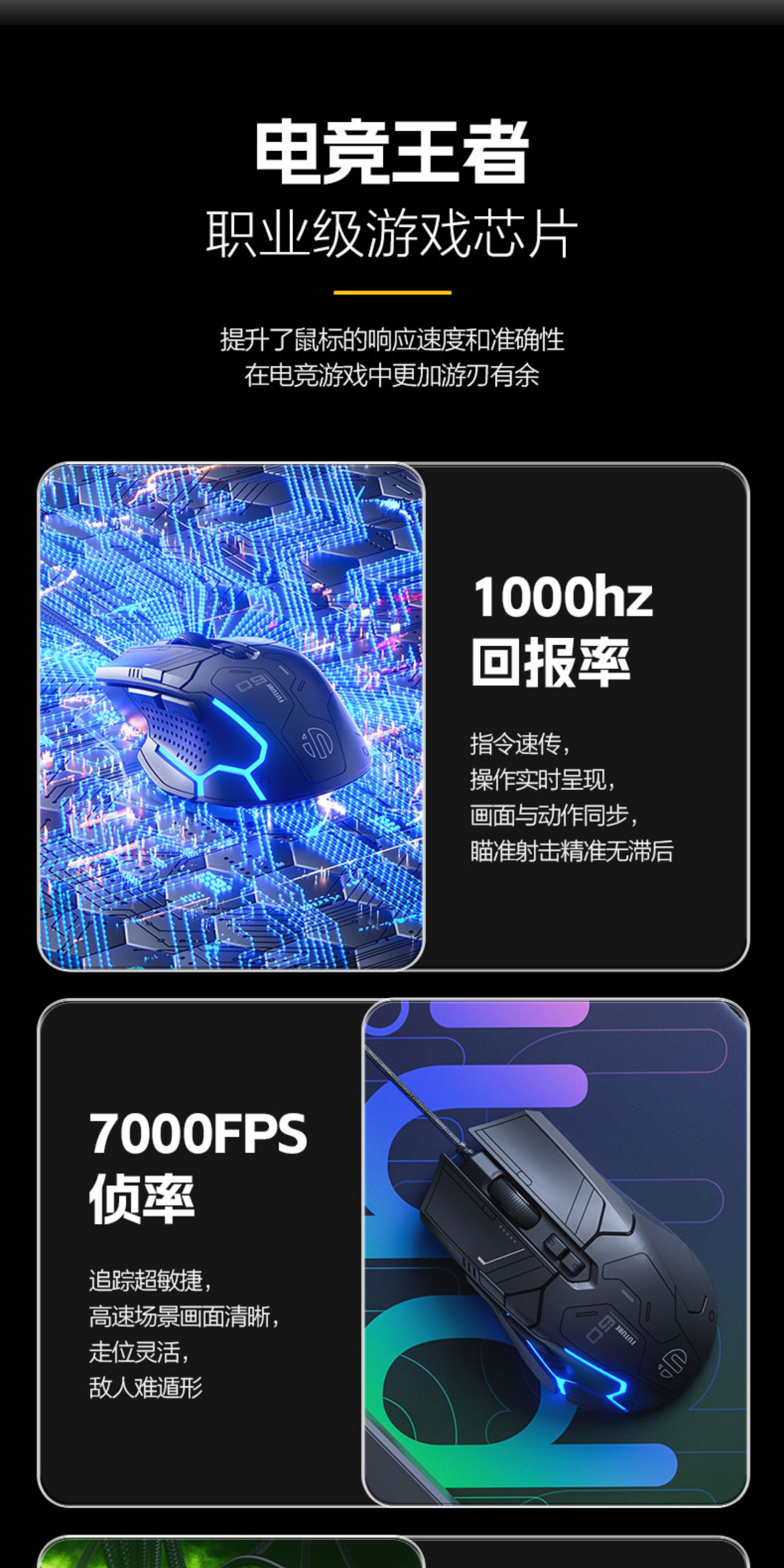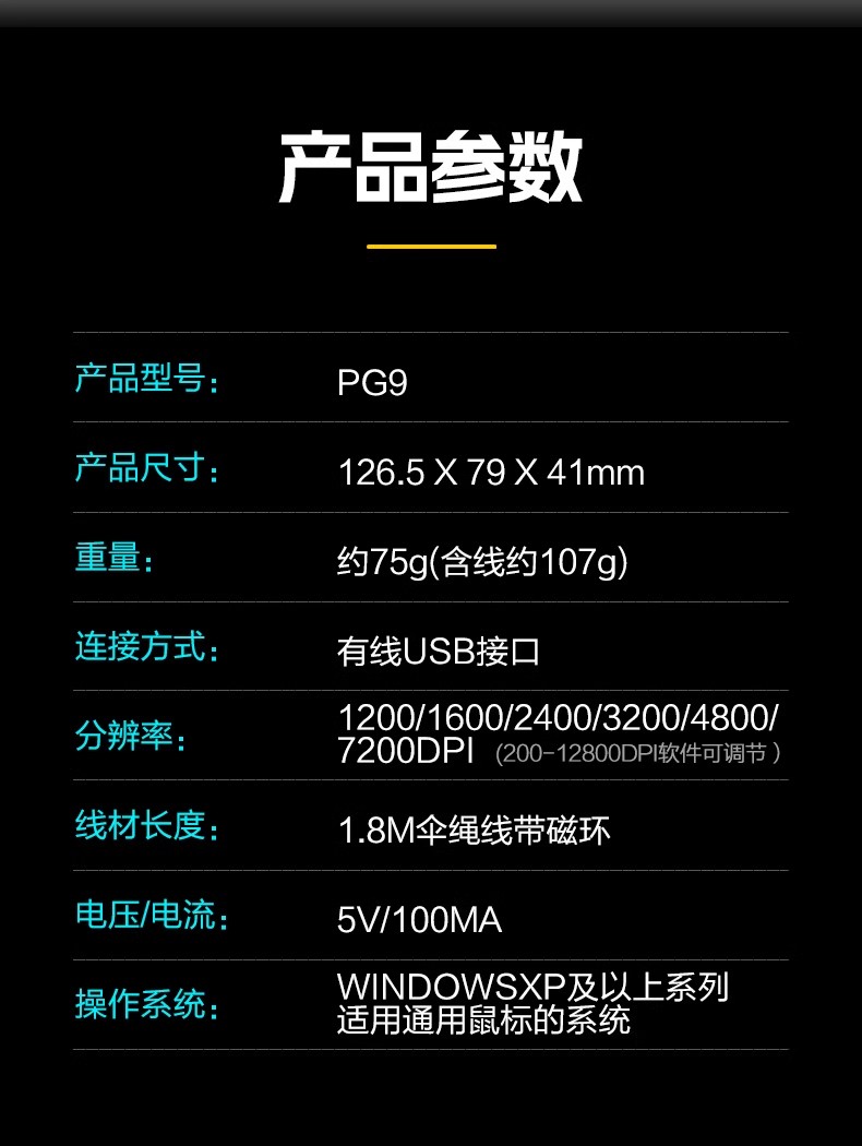 英菲克PG9有線滑鼠電競遊戯專用輕量化RGB機械吃雞宏編程電腦辦公