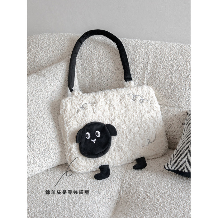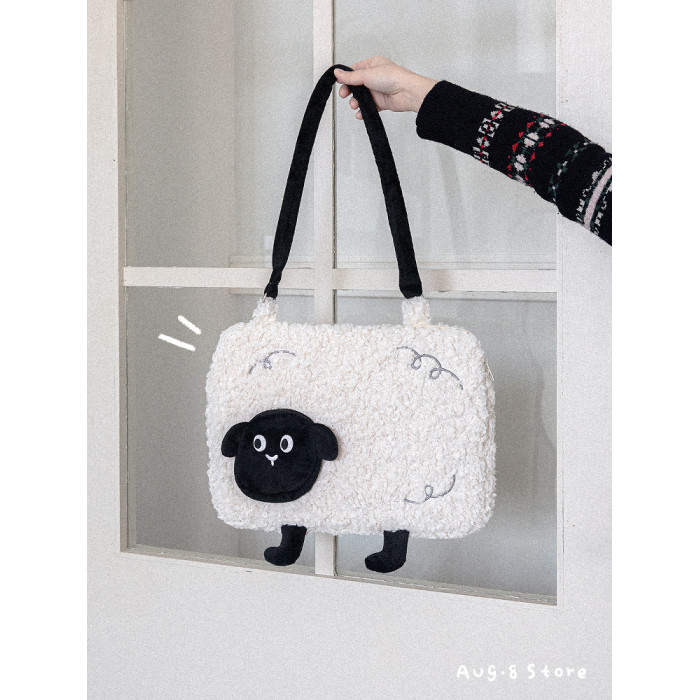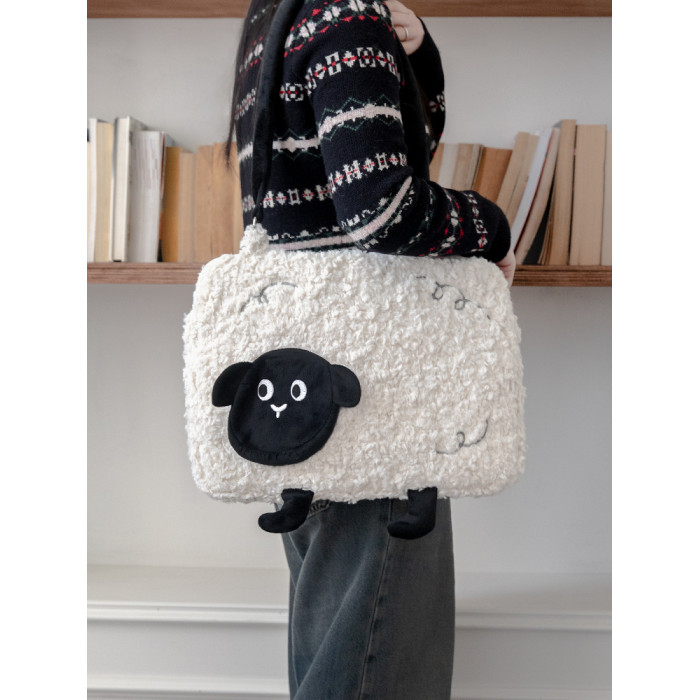 人間八月八丨原創綿羊電腦包羊羔絨可愛單肩防震保護ipad筆電收納包手提上課羊羔絨補習筆電收納包學生