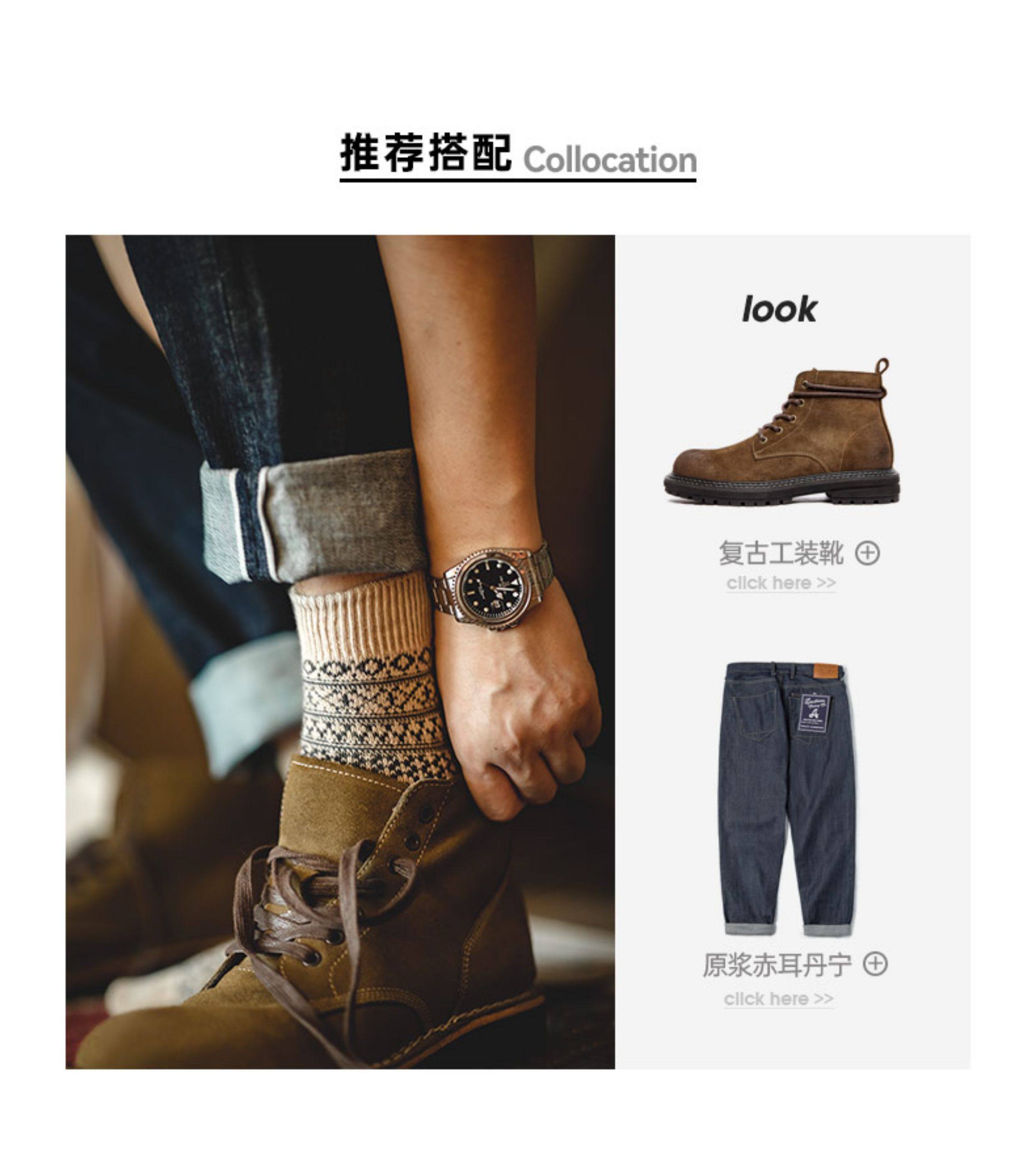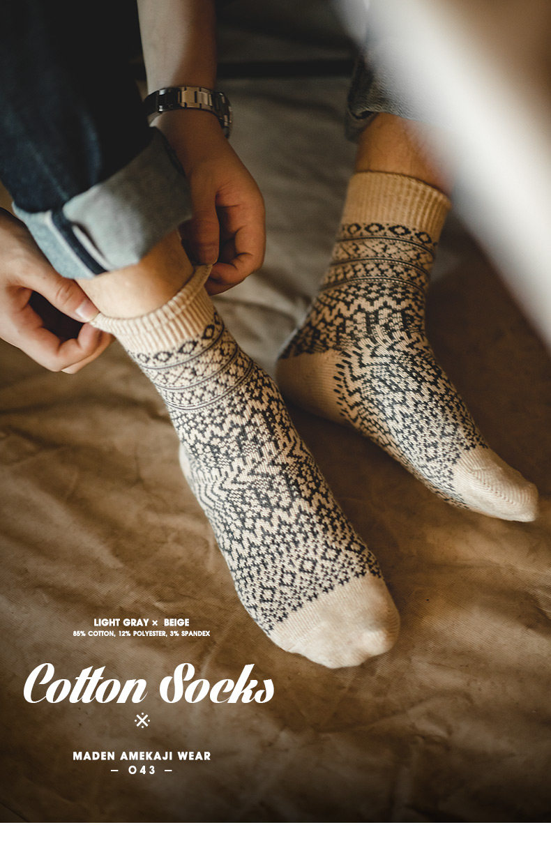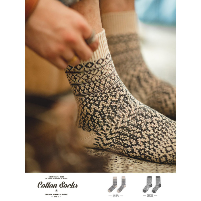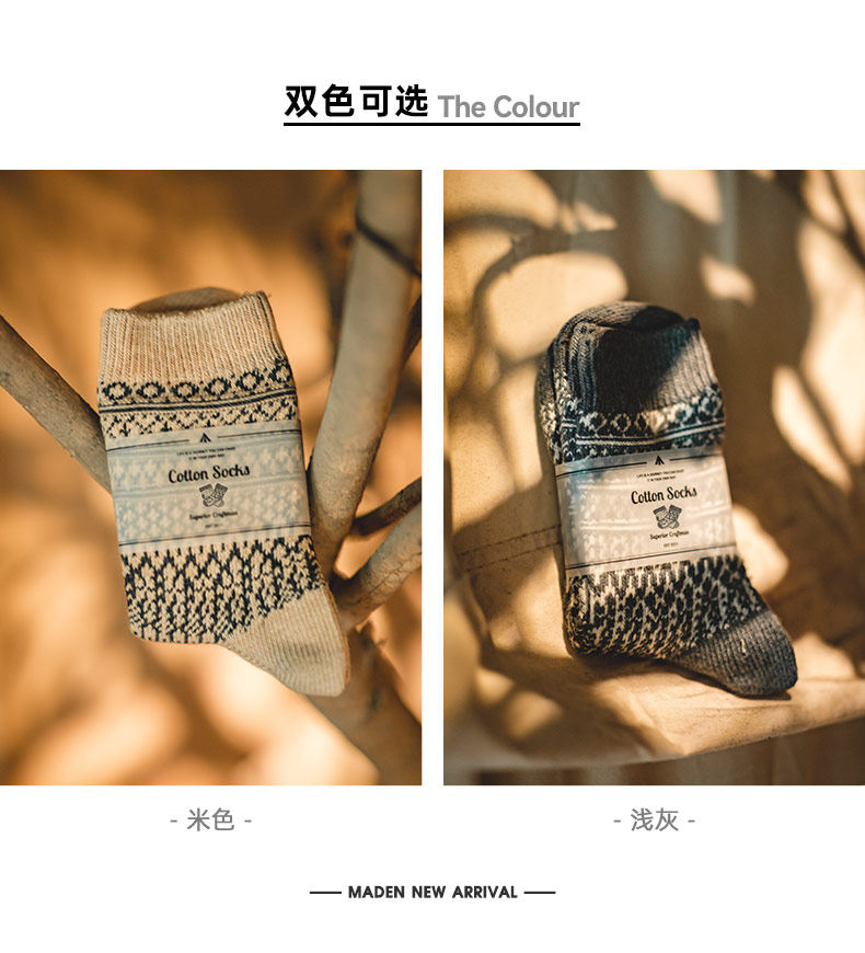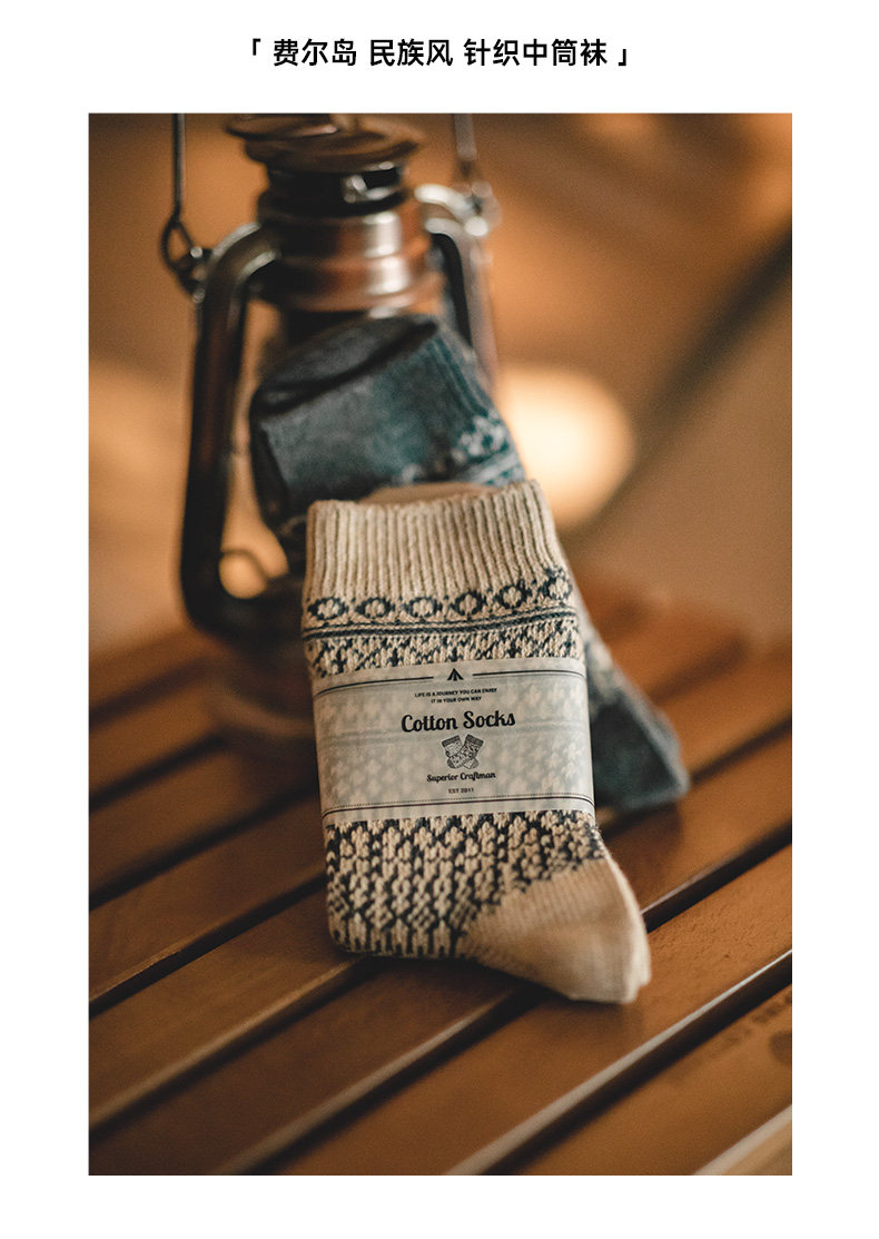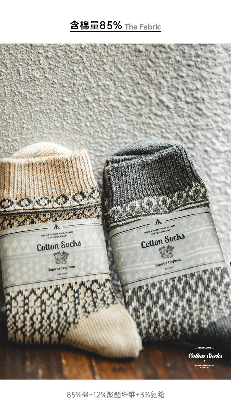 馬登工裝美式復古費爾島針織中筒襪民族風阿美哢嘰保暖長襪子男冬