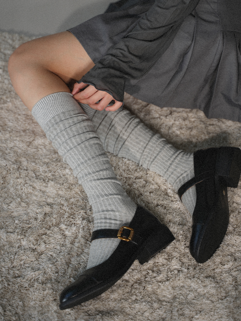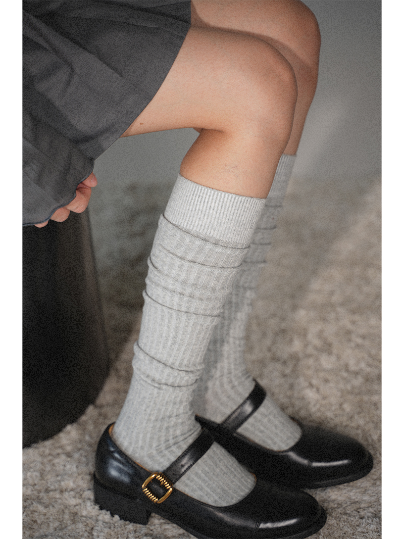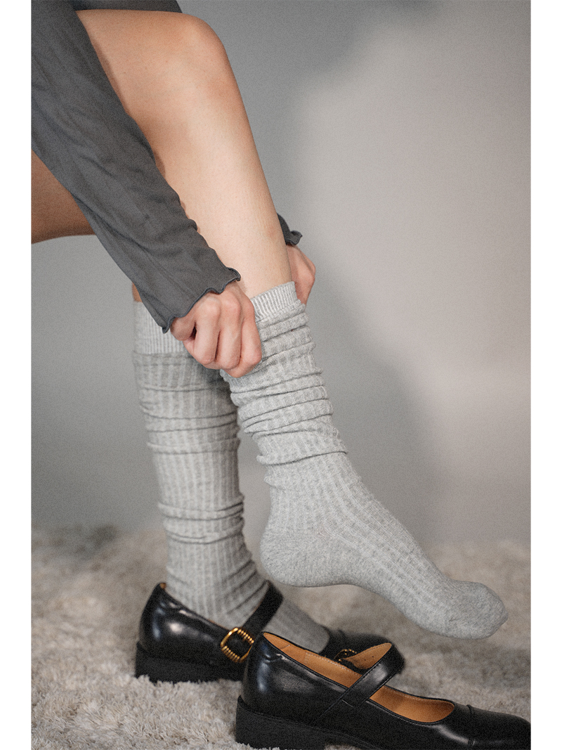 TRISECTION白色長筒襪子女秋冬季純棉小腿襪jk堆堆襪過膝高筒靴襪