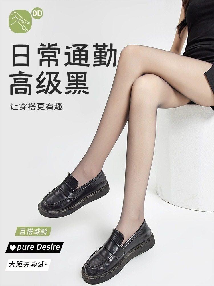 黑絲襪女性感超薄春秋款防勾絲不掉檔0d光腿神器黑色連褲襪夏