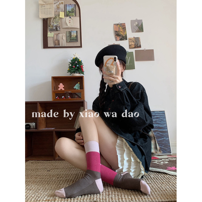 韓系撞色女士薄款拼接個性中筒堆堆襪小襪島春夏透氣日系吸汗男