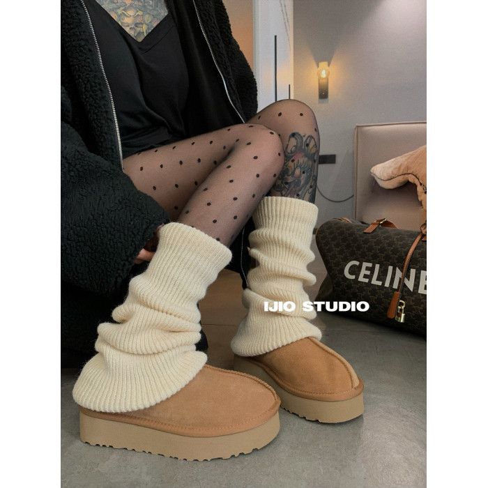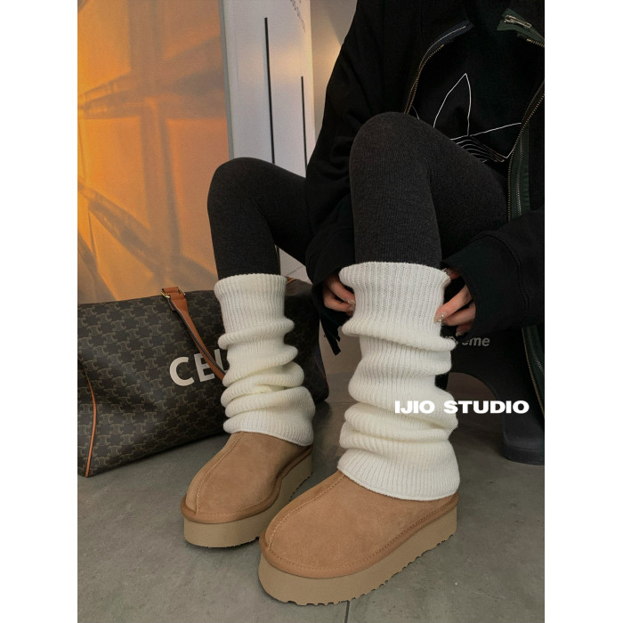 IJIO 微喇叭針織堆堆襪套復古簡約雪地靴腿套曡穿小腿襪加厚保暖