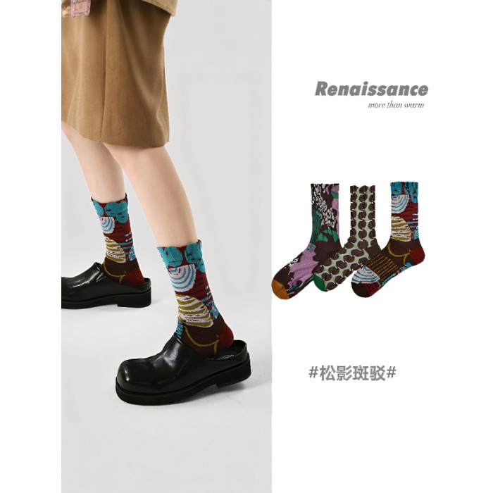 Renaissance襪子女薄款ins潮春秋款小衆設計感復古宮廷風中長筒襪