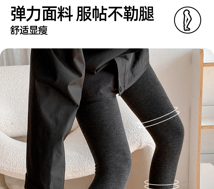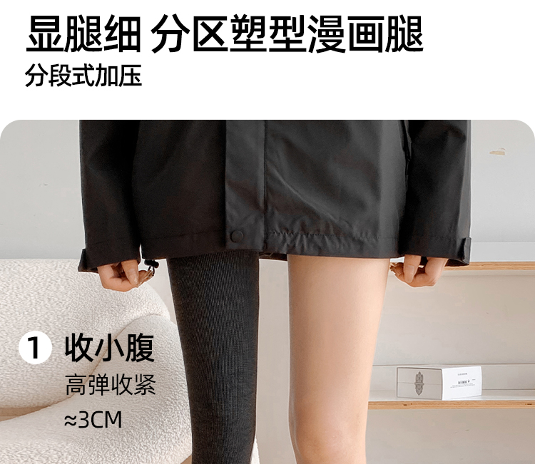 六衹兔子漫畫腿打底褲顯瘦連褲襪踩腳黑秋冬保暖加絨款黑灰色褲襪