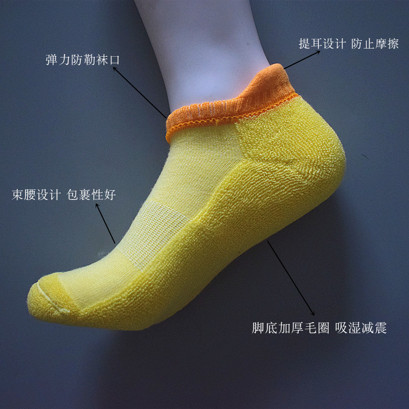毛巾底運動短襪加厚毛圈黑白男純棉出口日本吸溼跑步船襪子女