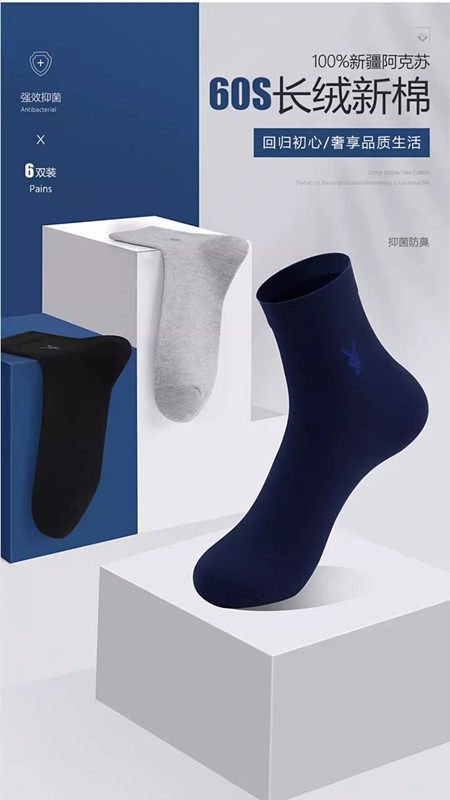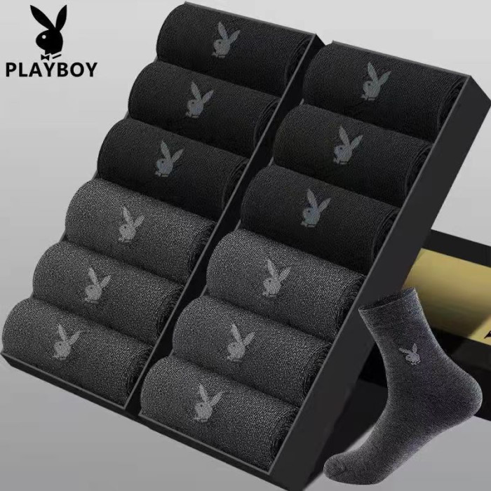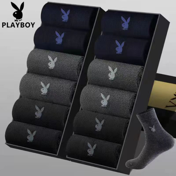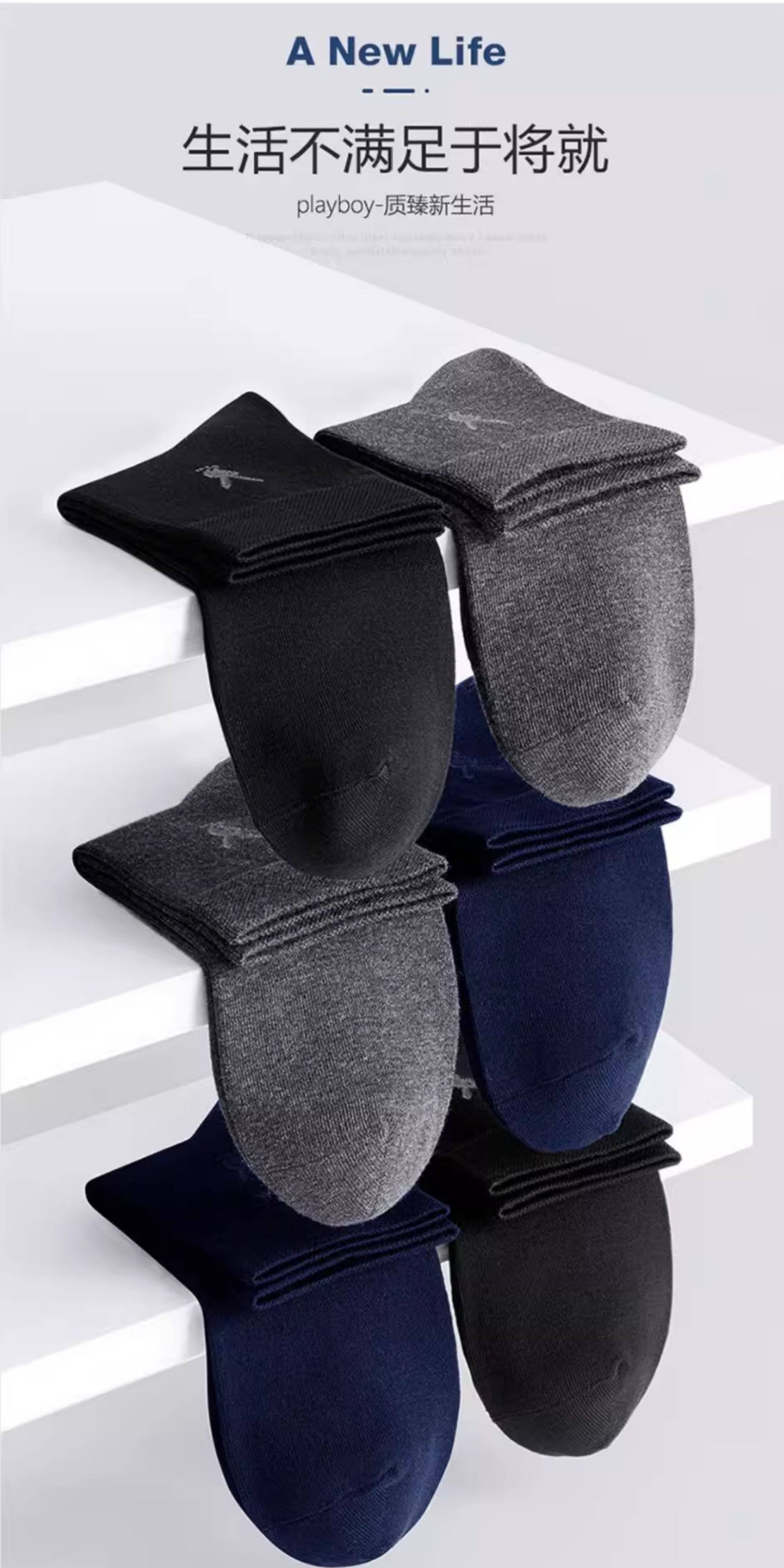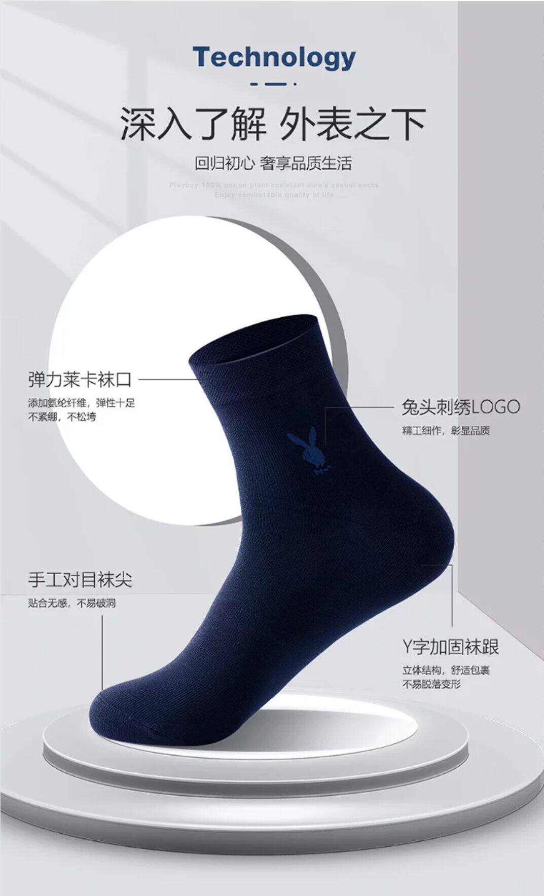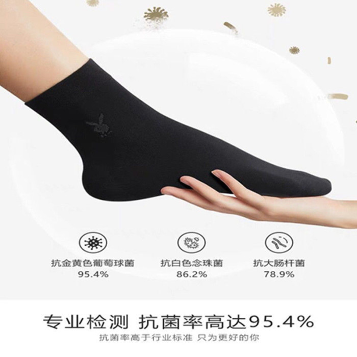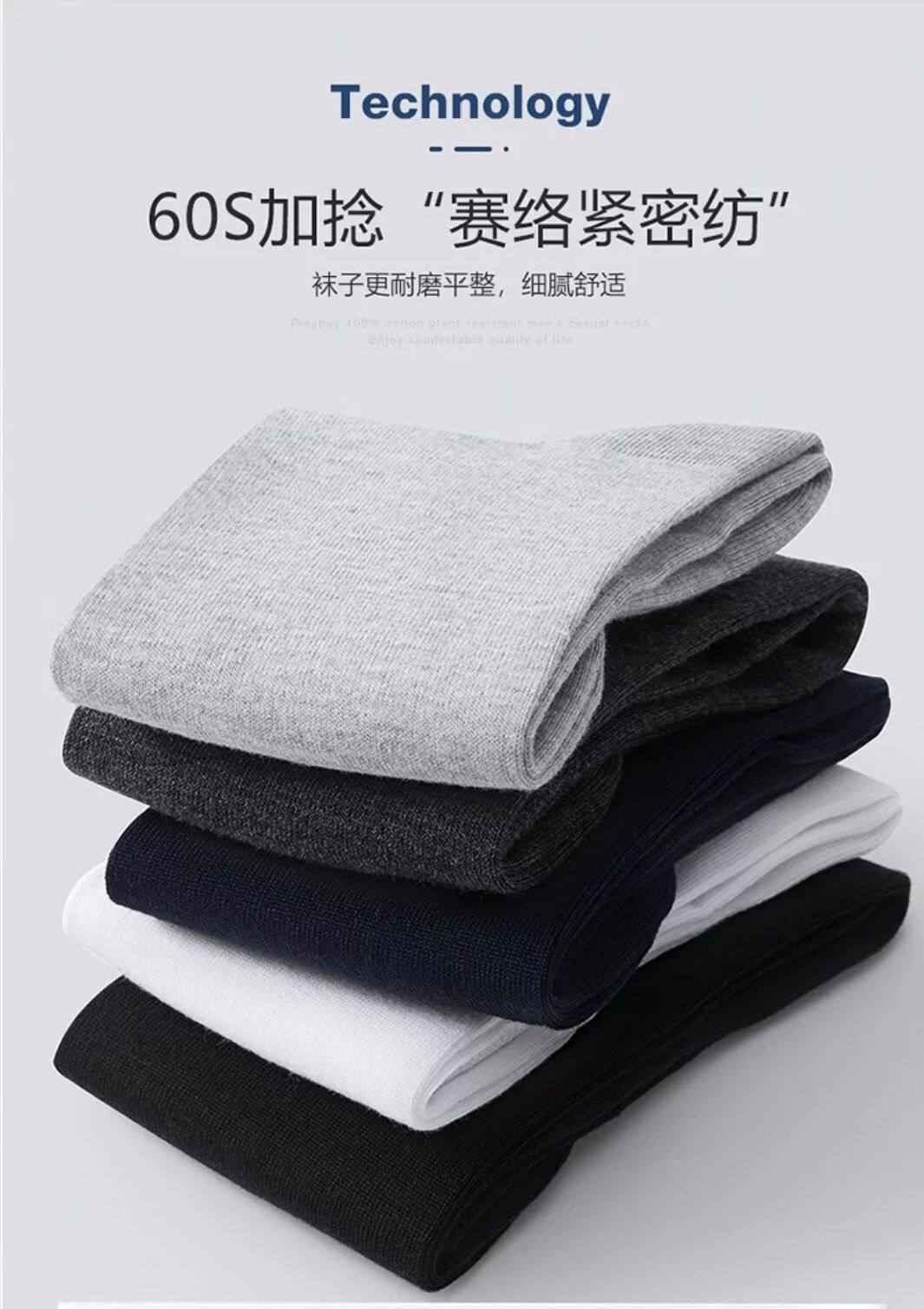 花花公子男士襪子棉襪春秋短襪抗菌防臭全棉中筒男襪秋冬黑色長襪
