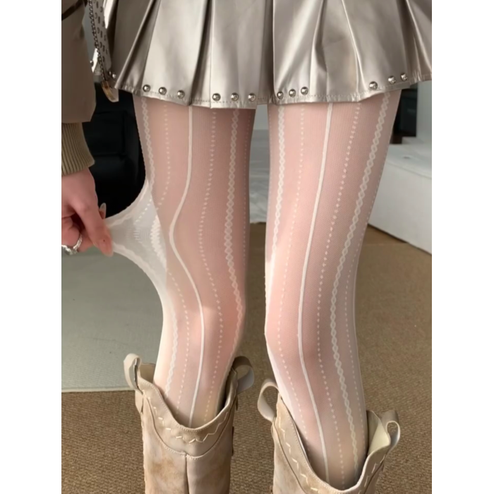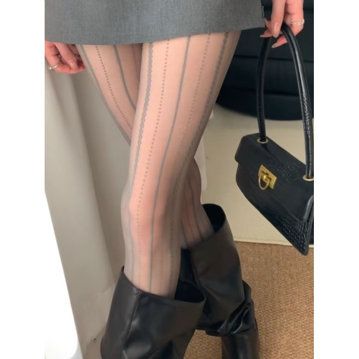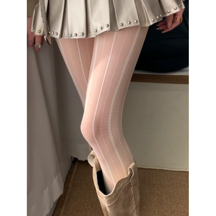miu奶白色絲襪薄防勾絲不掉檔純欲蕾絲竪條花紋打底褲襪女春秋款