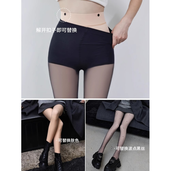 黑絲襪光腿神器女秋冬裸感黑透膚加絨雙層0D黑色波點襪高透連褲襪
