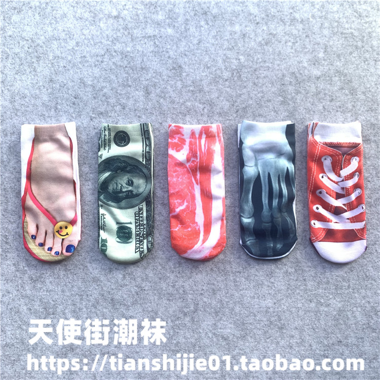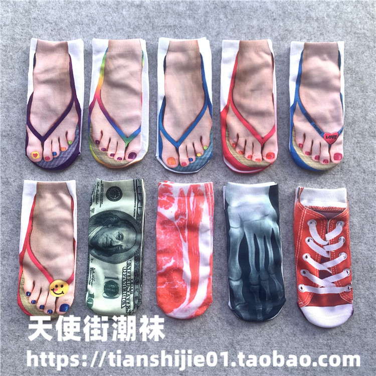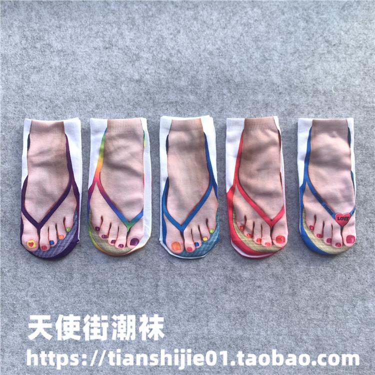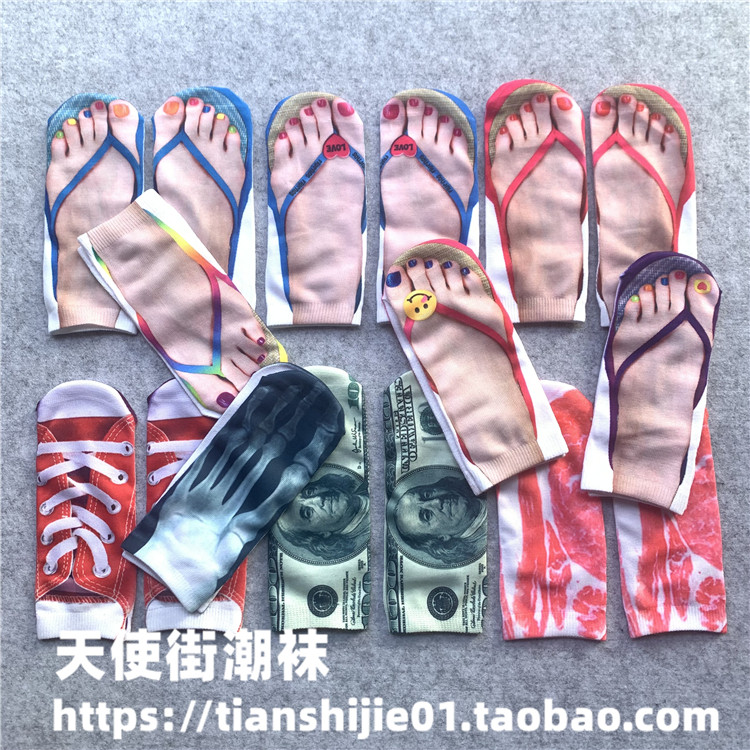 抖音網紅爆款夏季人字拖襪子趣味搞怪女短襪薄拖鞋襪惡搞男美甲襪