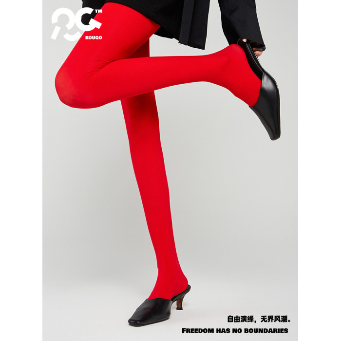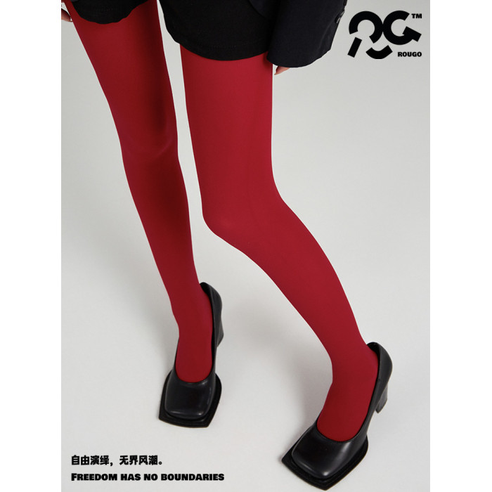 暗紅色天鵞絨連褲襪女春秋款紅絲襪本命年性感時尚辣妹聖誕打底襪