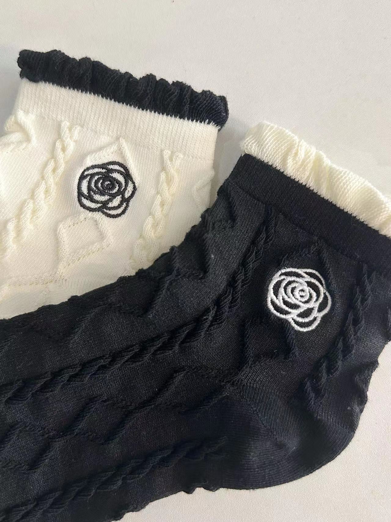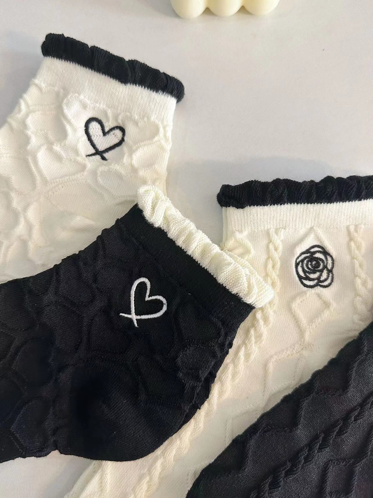 白色襪子中筒秋女樂福鞋短筒夏季薄款純棉搭配短款短襪女士黑色