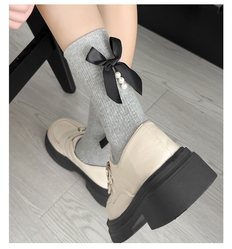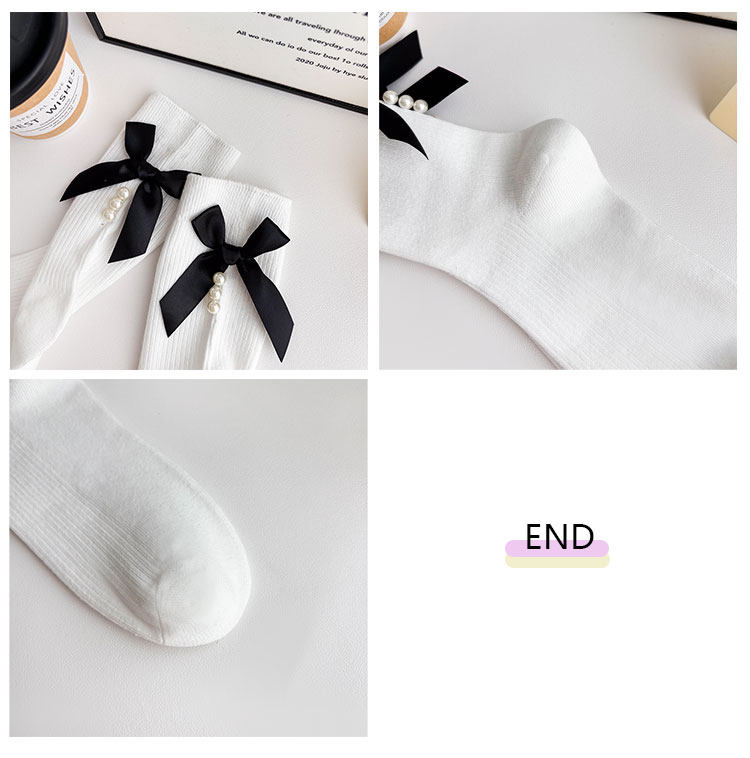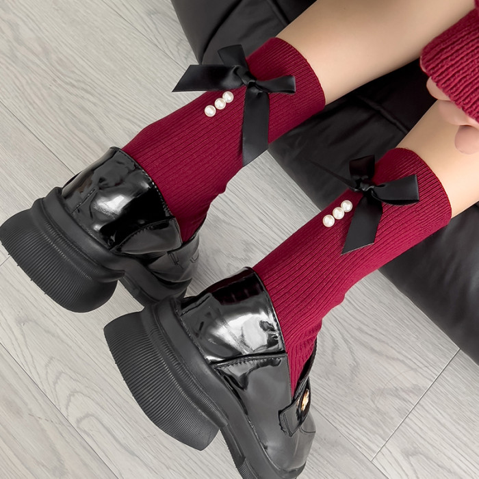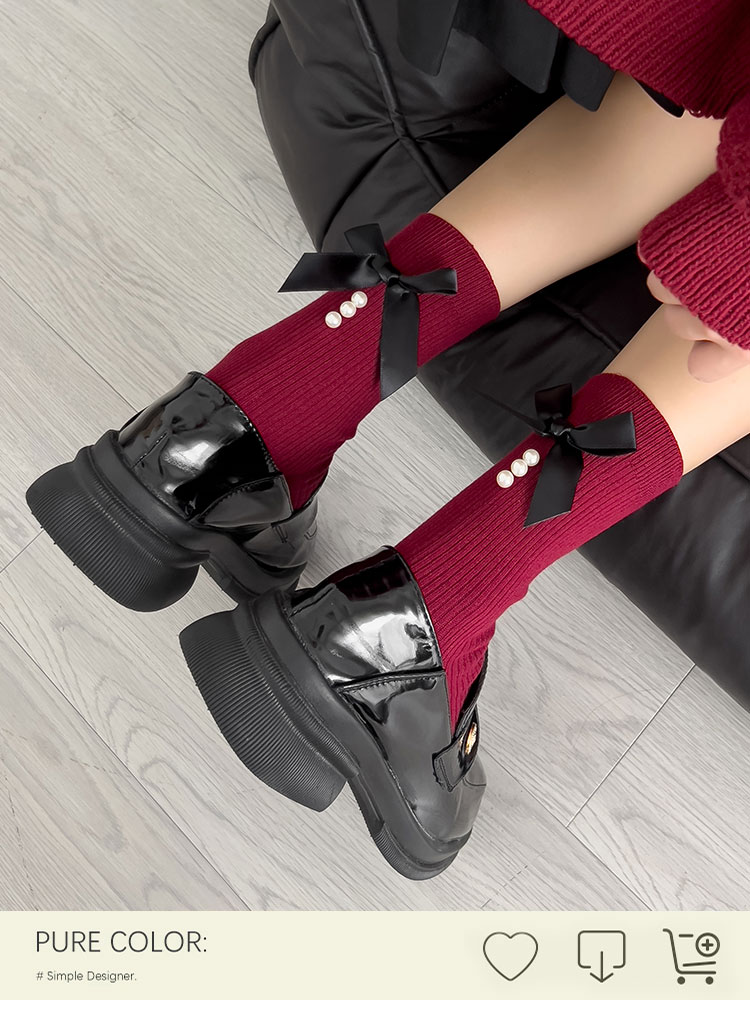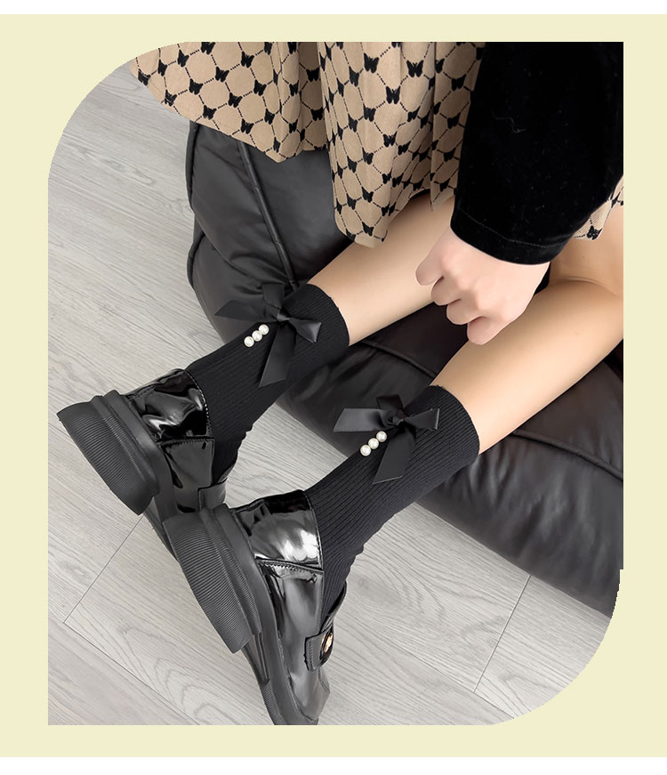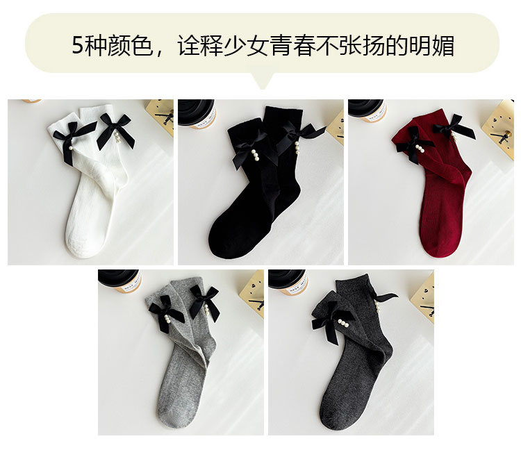 後跟蝴蝶結襪子女秋冬新款日系可愛甜美學院風珍珠中筒襪外穿ins