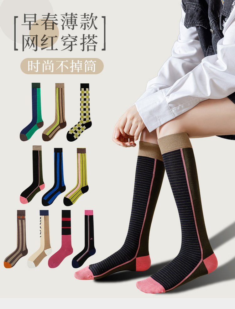 小腿襪女春秋歐美街頭網紅潮流無骨長筒襪子女秋冬顯瘦及膝高筒襪