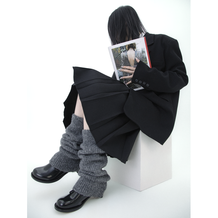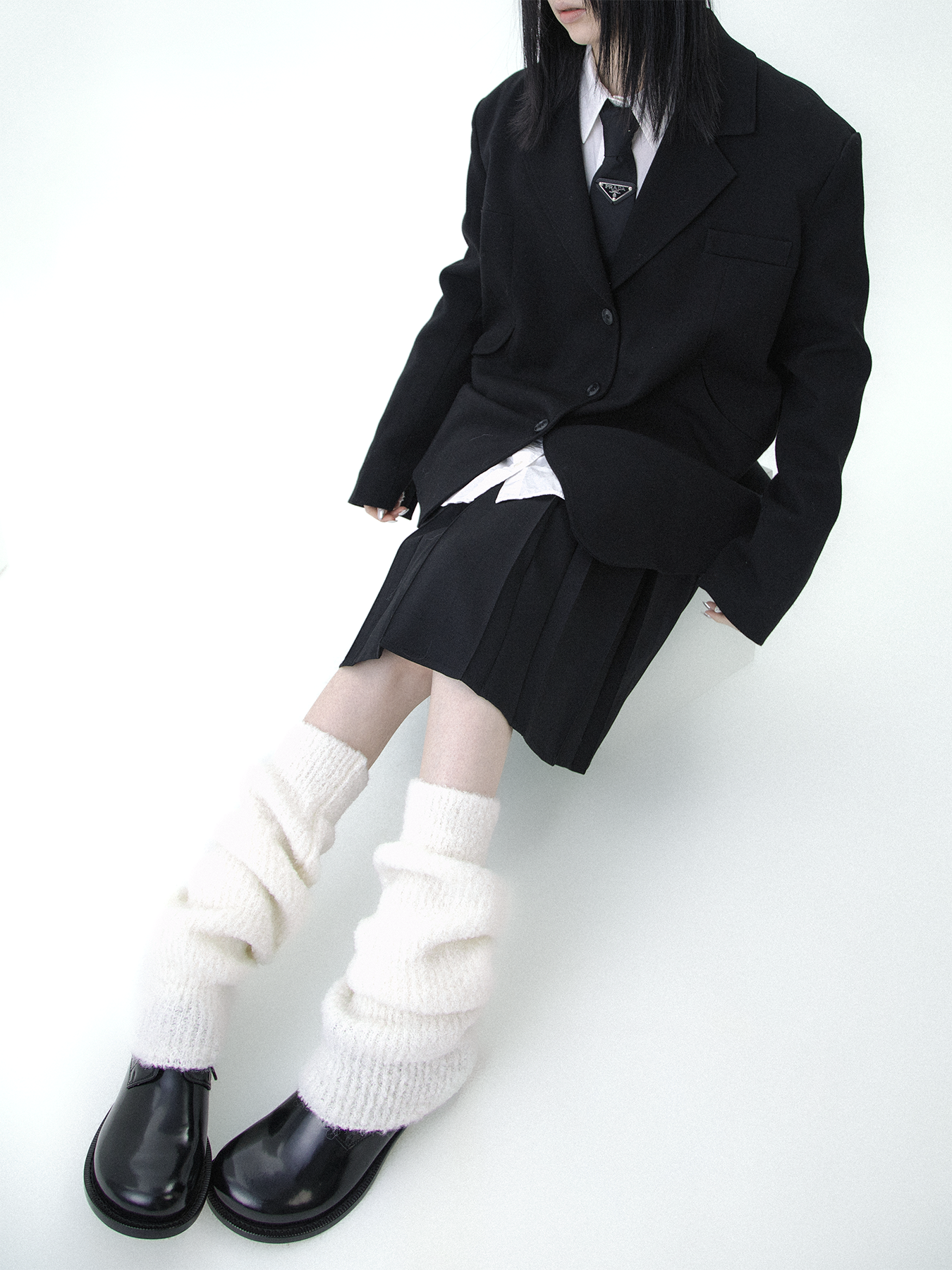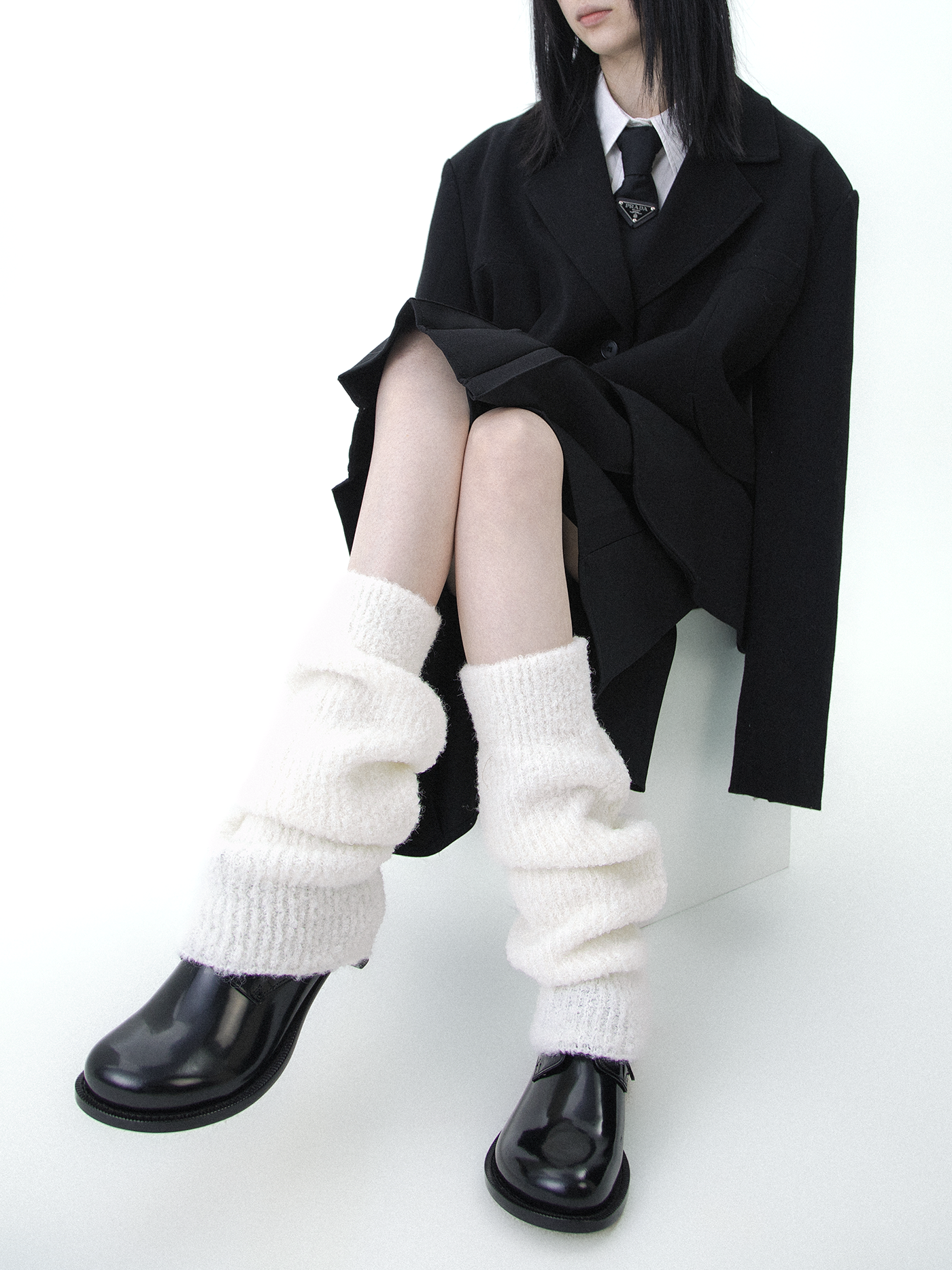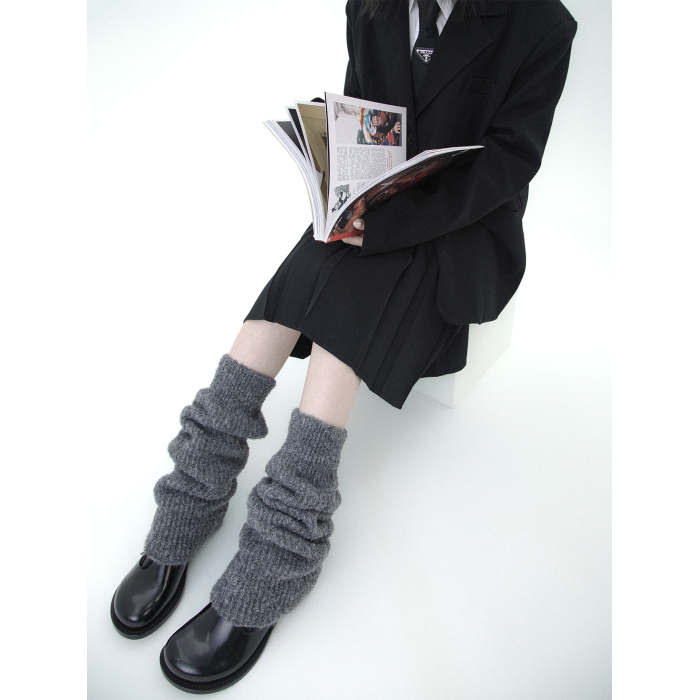 SS2L極簡風純色羊毛針織襪套高級感韓系百搭加厚保暖堆堆襪女ins